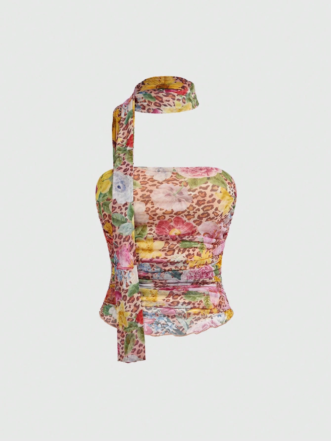 J-Fashion Débardeur sexy à imprimé hibiscus et léopard pour femmes, style vacances