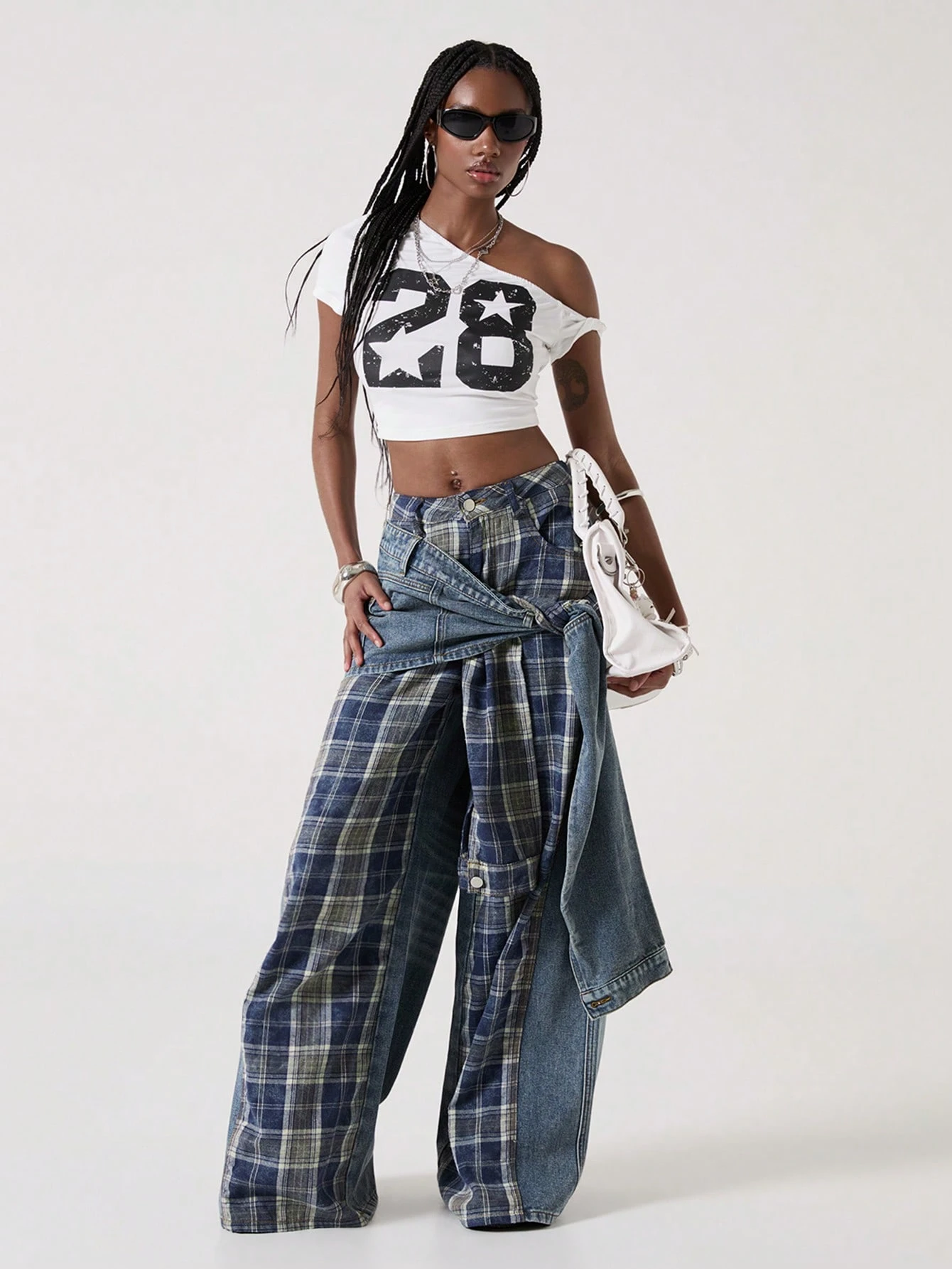 J-Fashion Jeans en denim style patchwork rétro punk avec liens pour femmes