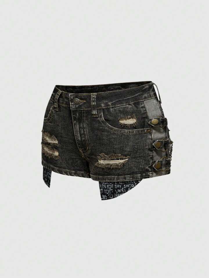 J-Fashion Short en jean déchiré taille basse casual pour femme, style Y2K