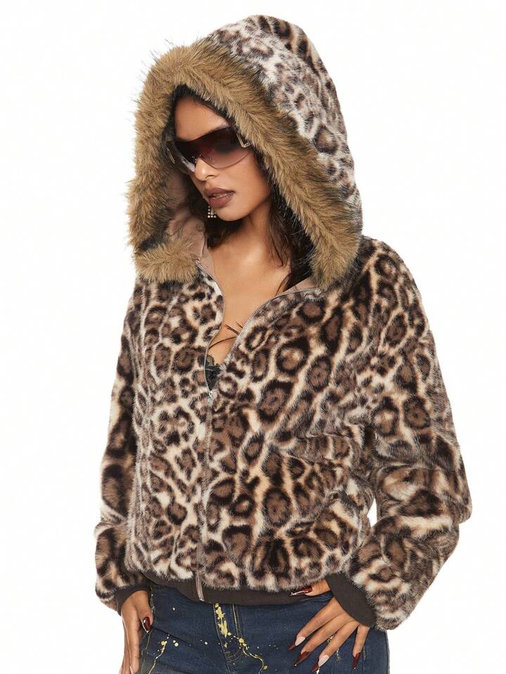 J-Fashion Manteau de fourrure à imprimé léopard de style Gyaru Y2K pour femmes, convient pour le streetwear