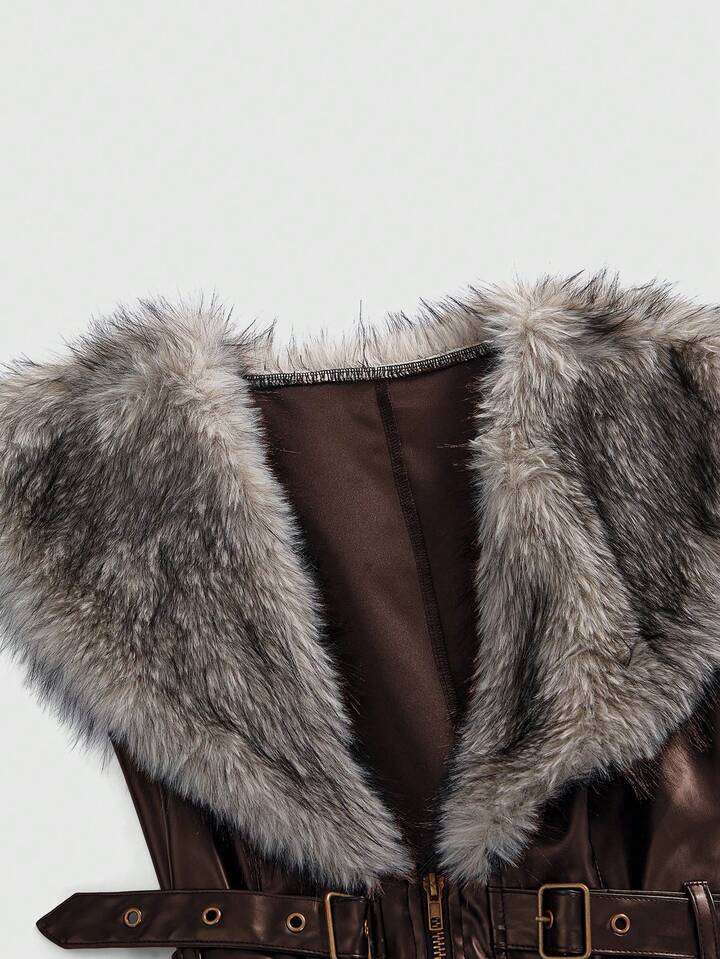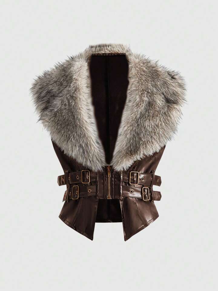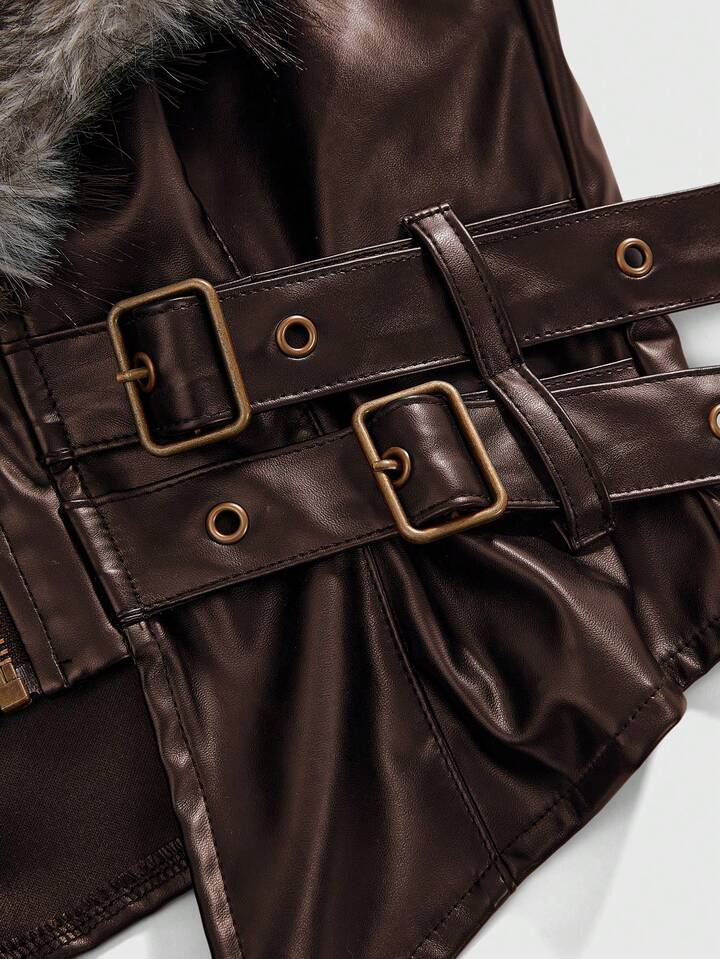 J-Fashion Veste en PU pour femmes avec col amovible , style Y2K automne/hiver