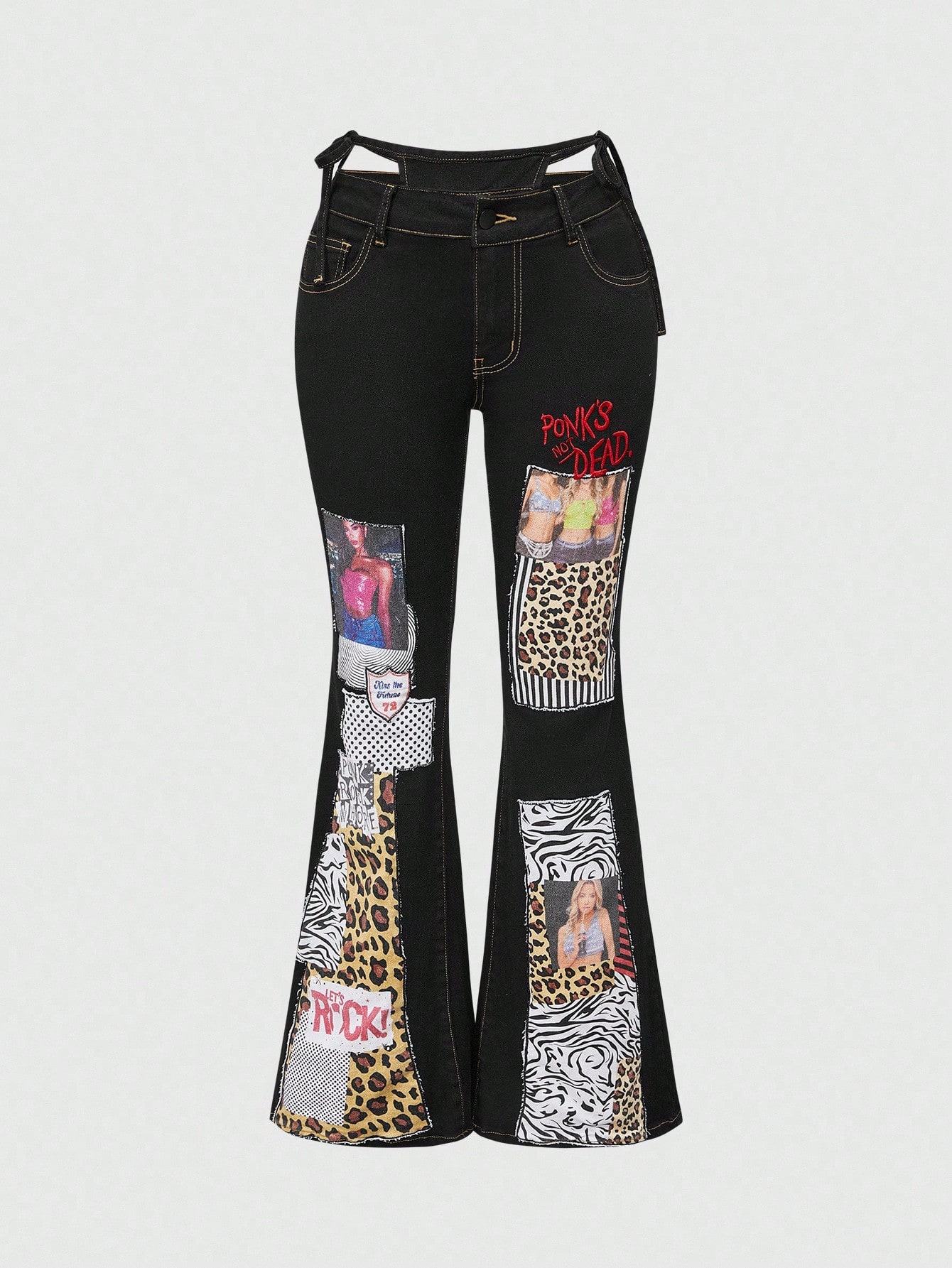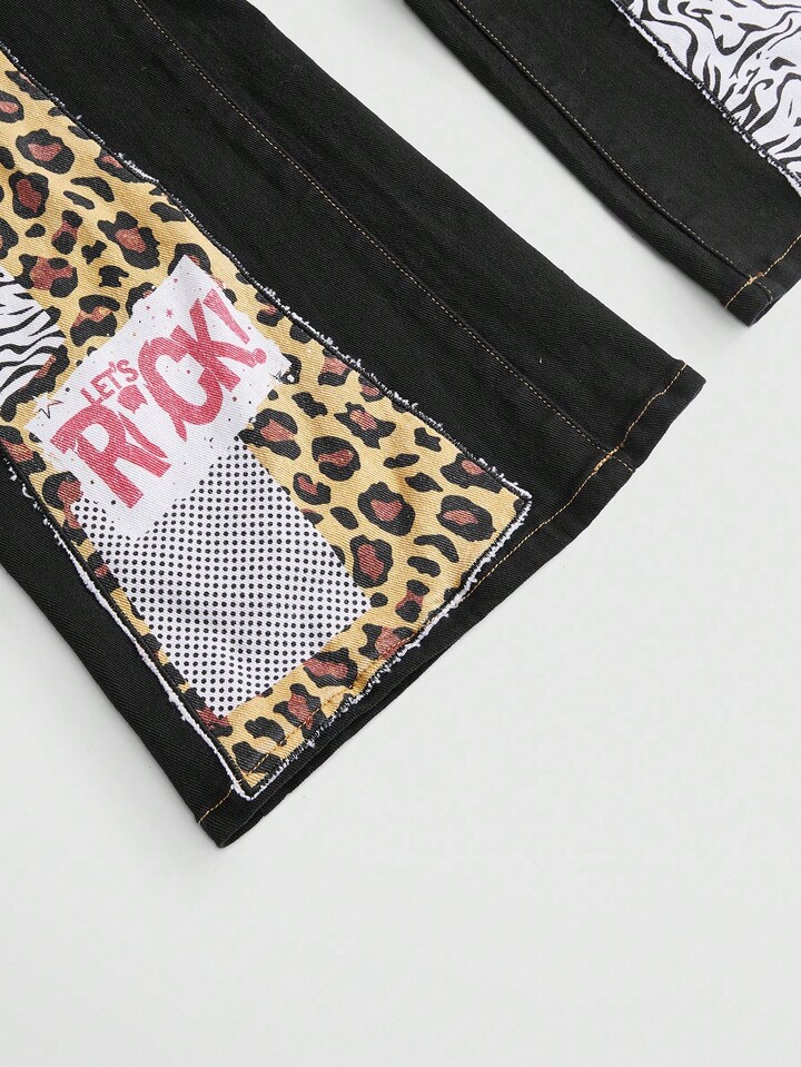 J-Fashion Jeans en denim brodé avec imprimés léopard, zèbre, rayures verticales et patchwork, style Y2K Baddie