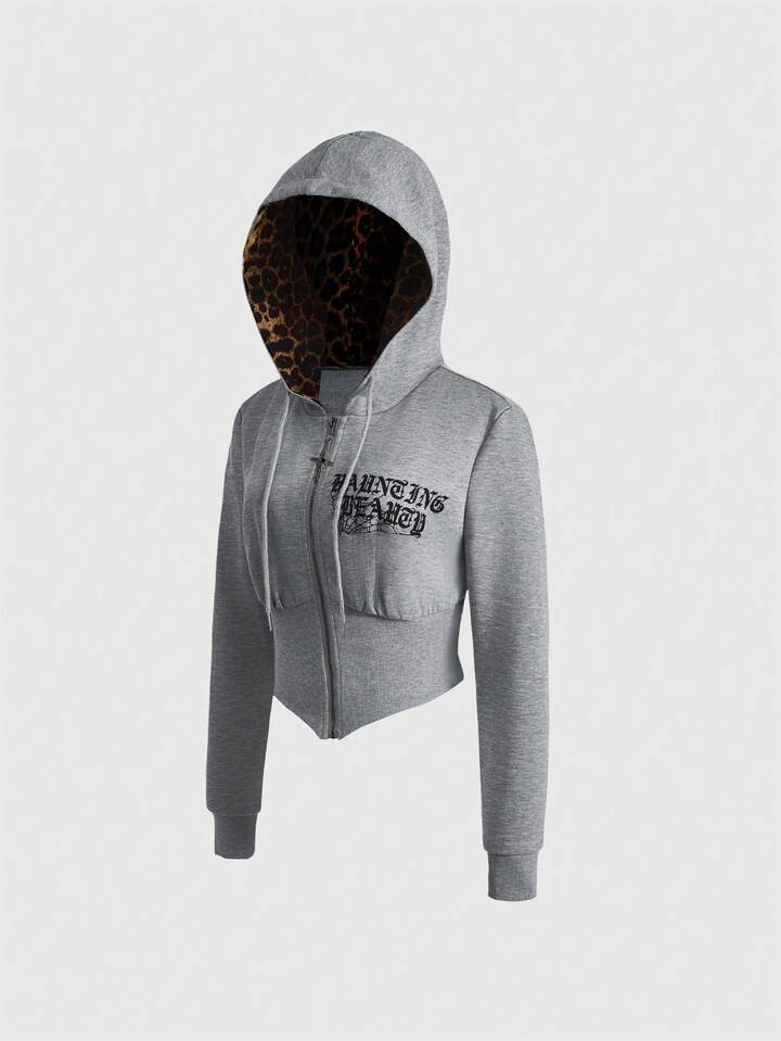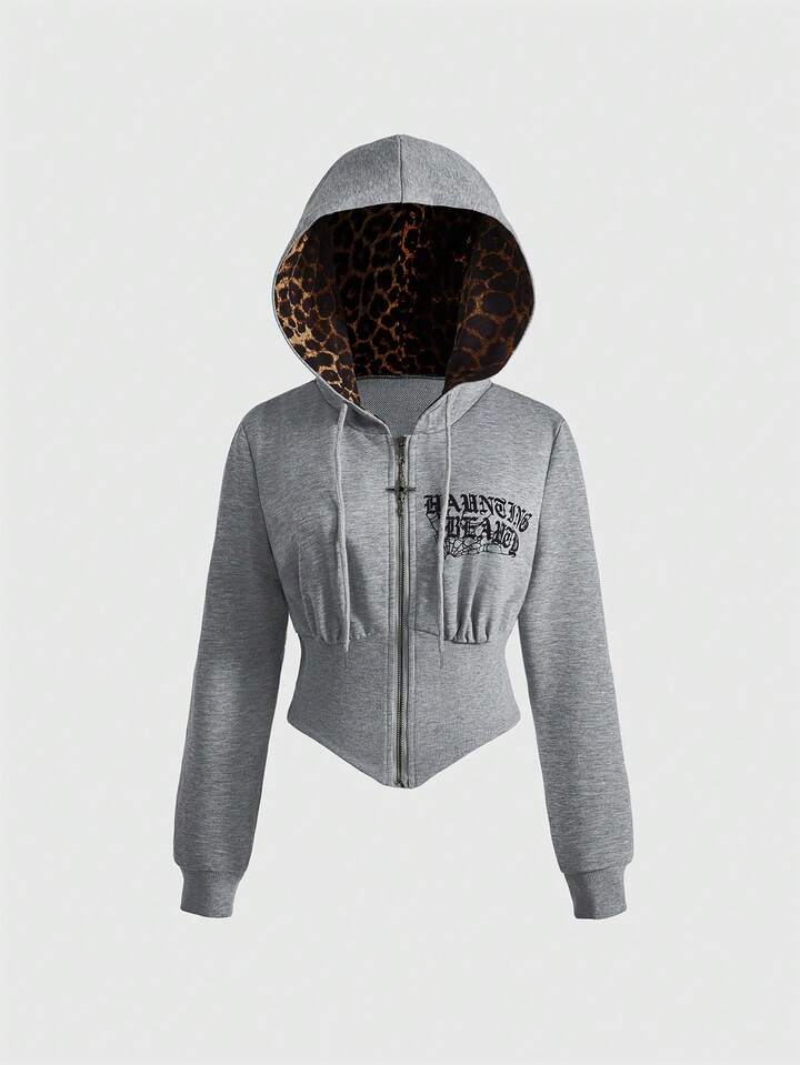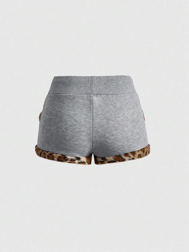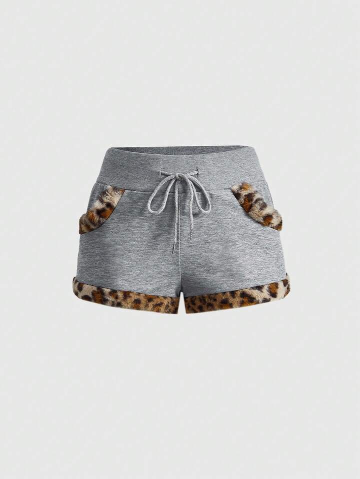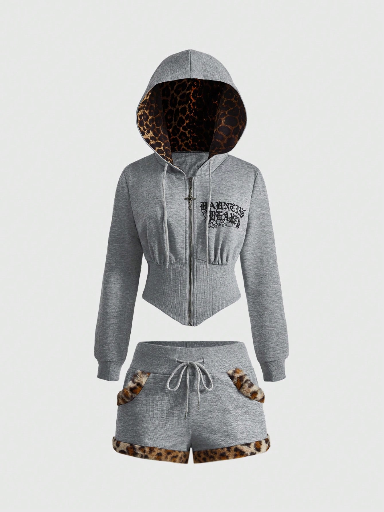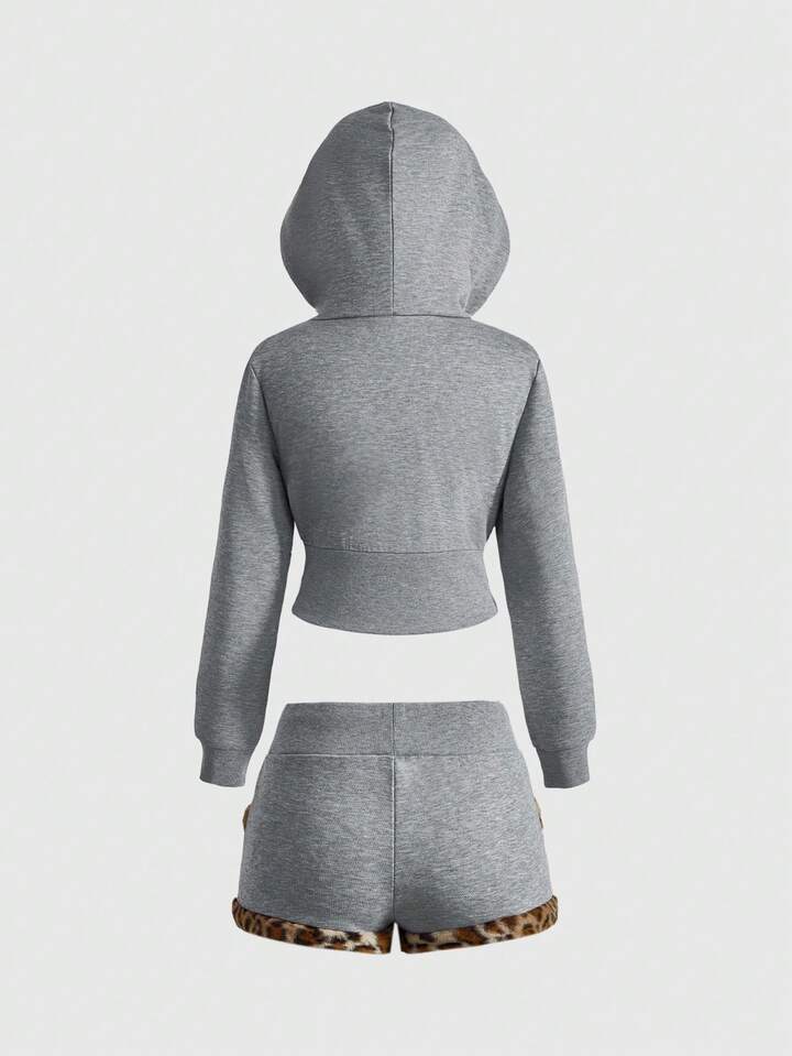 J-Fashion Ensemble sweat-shirt imprimé léopard Y2K et short duveteux à imprimé léopard, automne/hiver