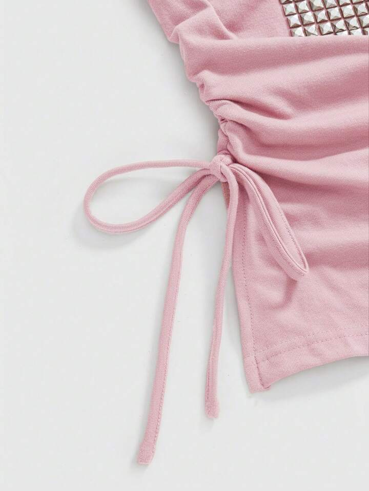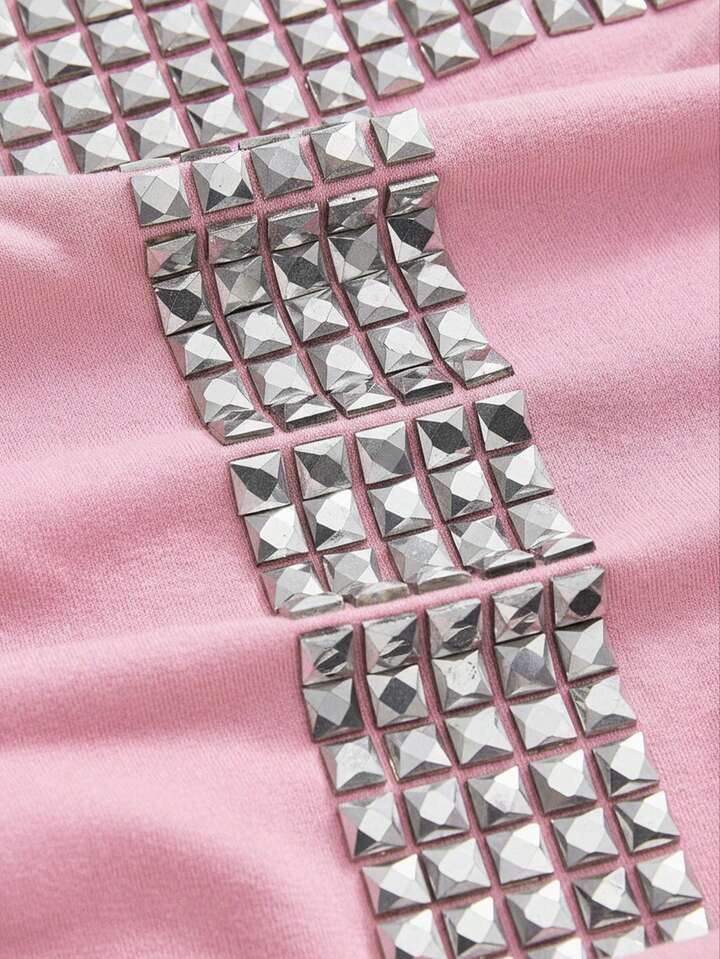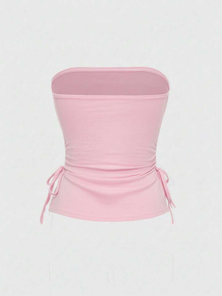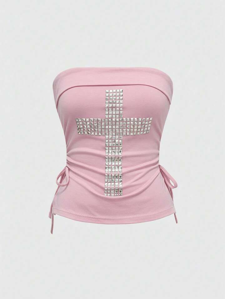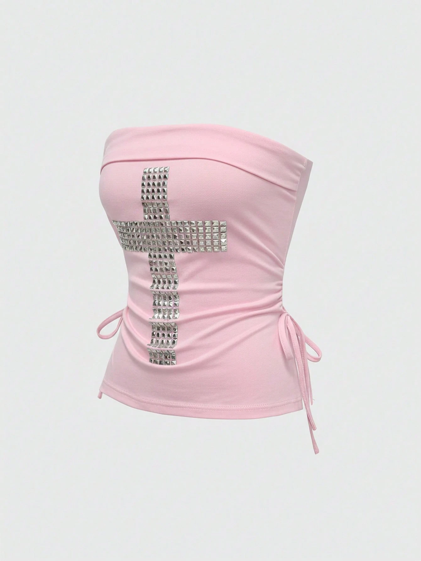 J-Fashion Top court noir pour femmes avec décorations de strass en forme de croix, sans bretelles, avec cordon de serrage et fente à l'ourlet