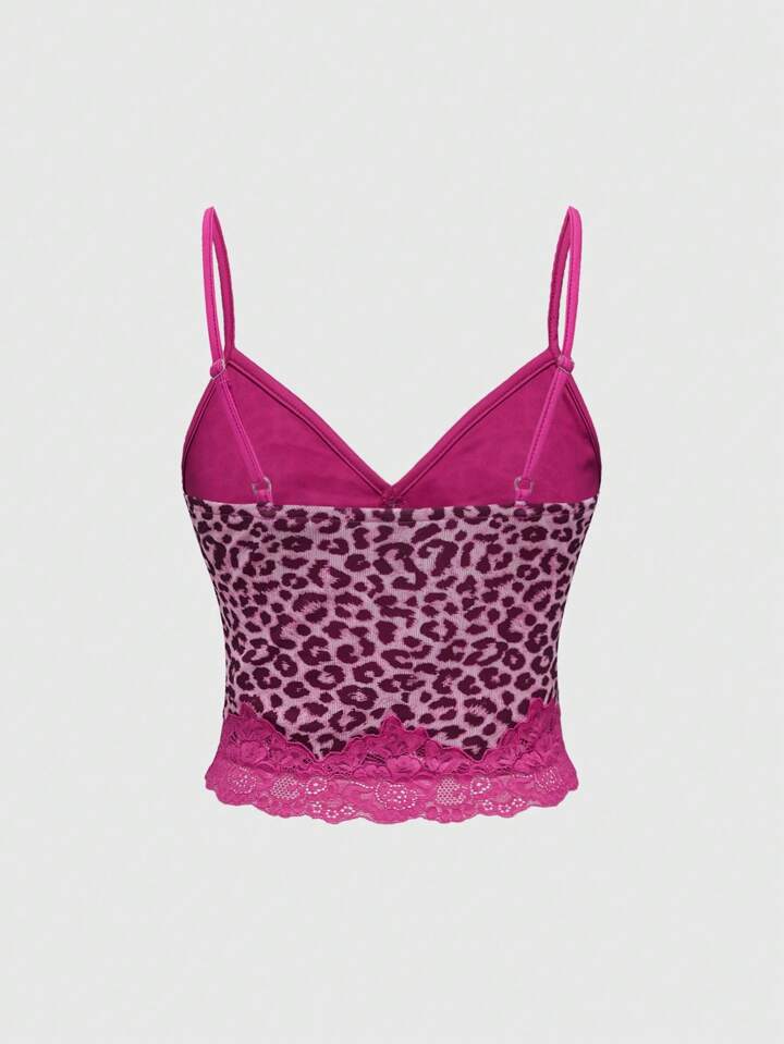 J-Fashion Débardeur style Gyaru Y2K Harajuku à imprimé léopard avec bordure en dentelle contrastée et maille, pour la Saint-Valentin
