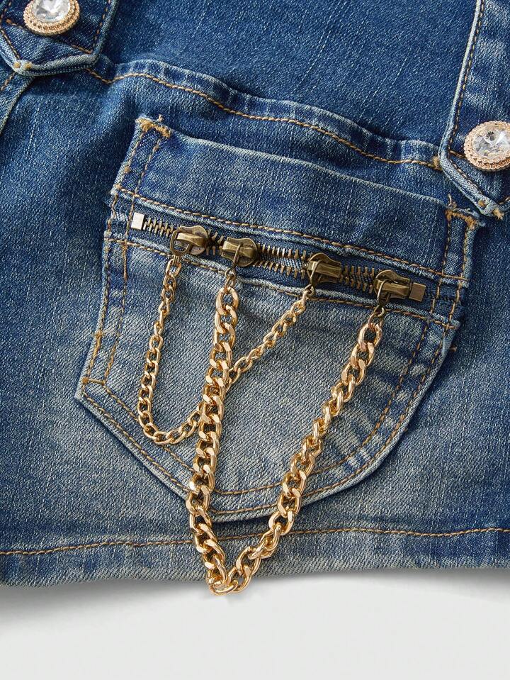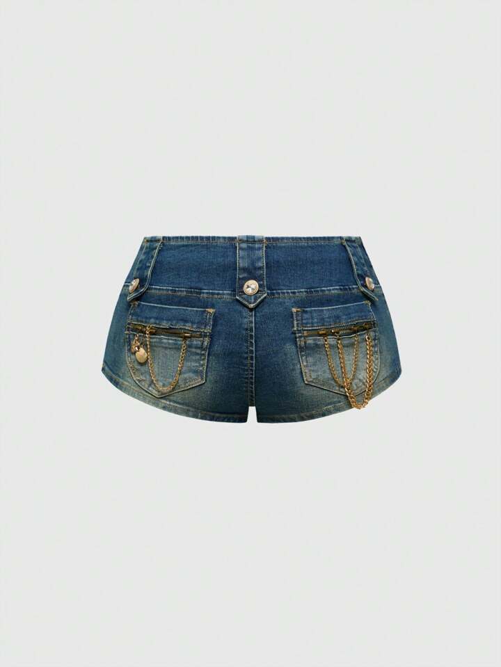 J-Fashion Short en jean taille basse à lavage délavé avec chaîne sexy, style chic Harajuku Y2K