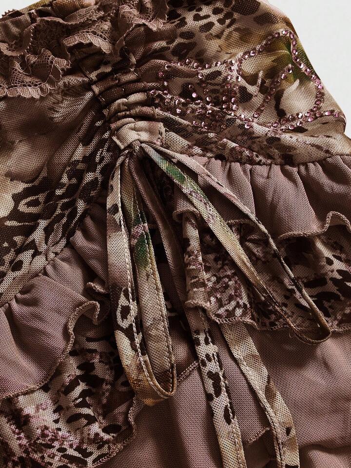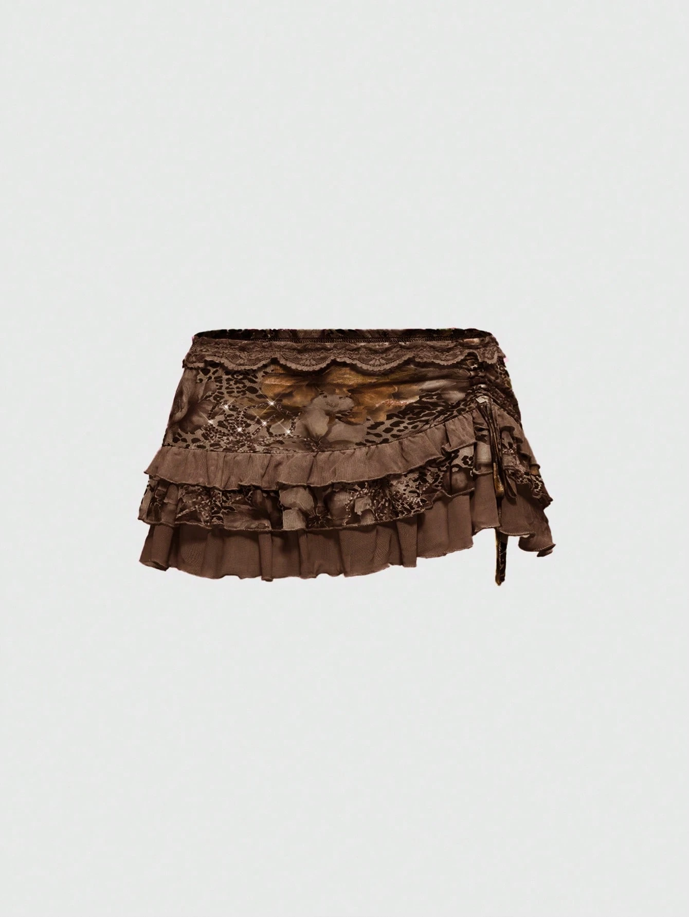 J-Fashion Jupe mini à taille basse rétro sexy Y2K en patchwork de dentelle, style vacances/plage
