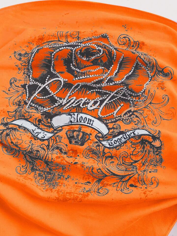 J-Fashion Top bustier asymétrique à ourlet avec cordon de serrage, imprimé rose et ornements de strass, style Y2K