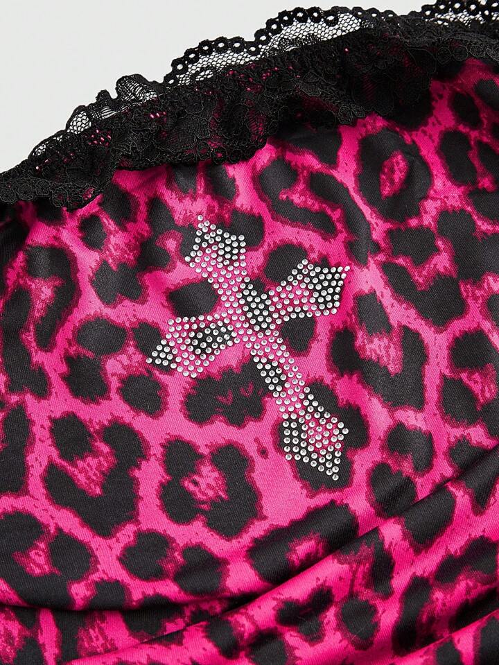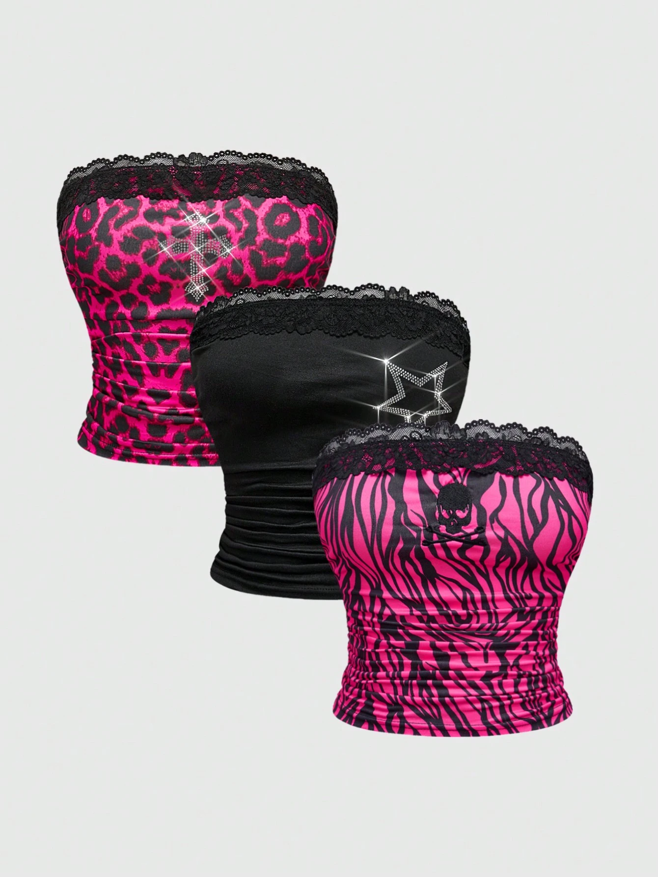 J-Fashion Ensemble de Top court style Y2K pour femmes, avec des imprimés d'étoiles, de croix, de crânes et d'animaux avec des décorations de strass