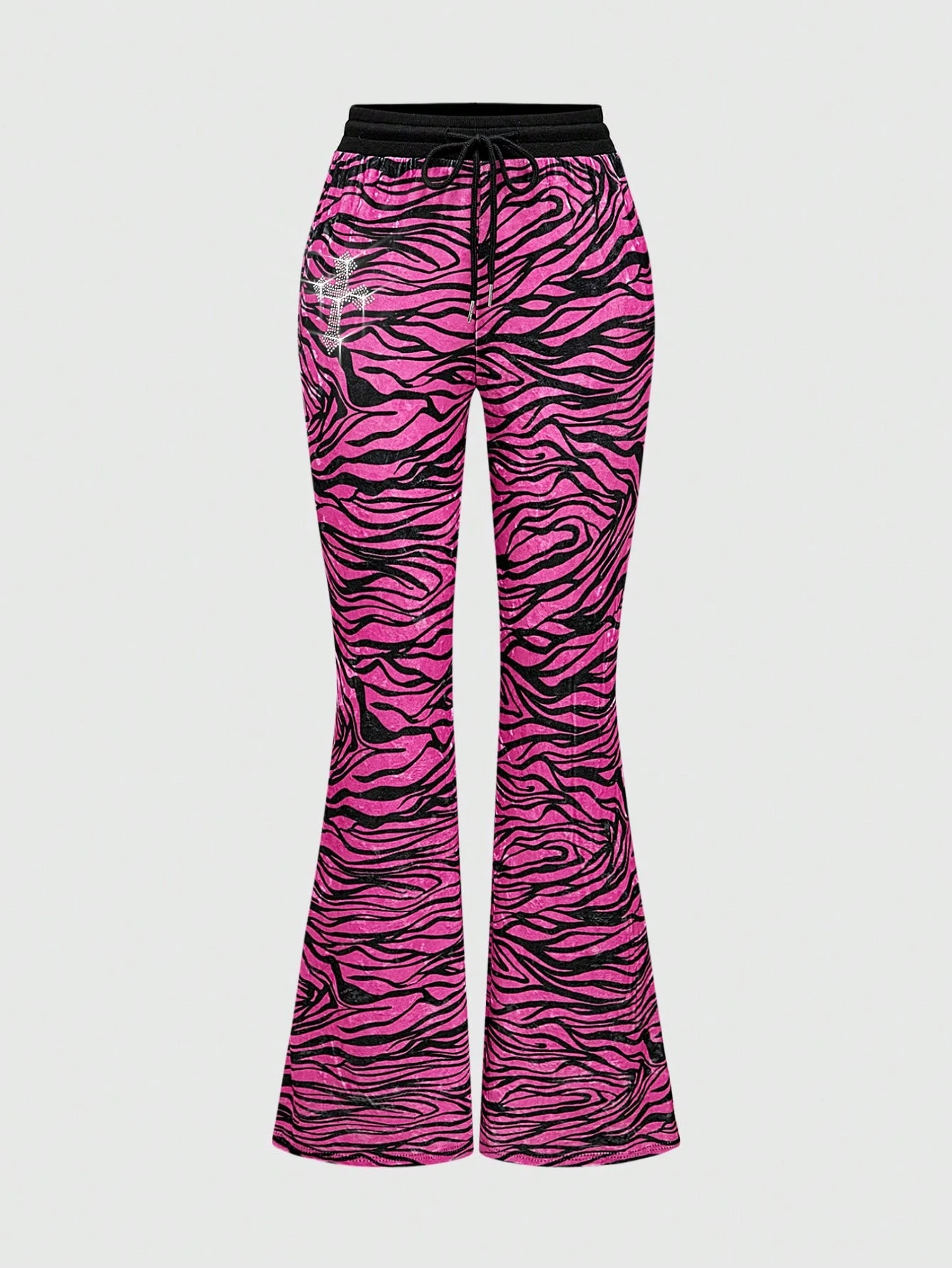 J-Fashion Pantalon évasé à taille basse style Y2K vintage imprimé zébré avec sequins et velours pour femmes, pour le carnaval