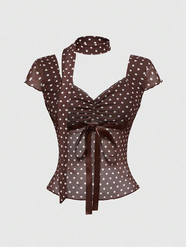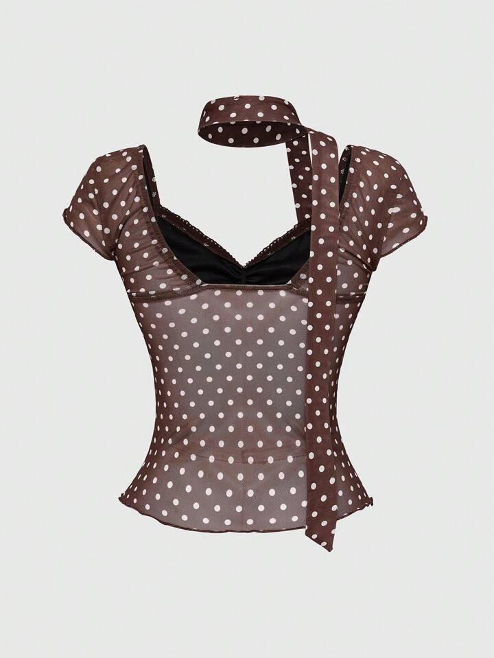 J-Fashion T-shirt doux pour femmes avec col strass et motif à pois dans le style Y2K
