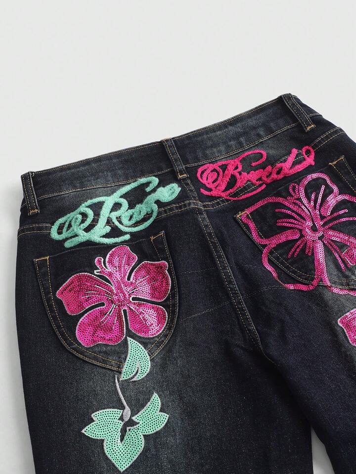J-Fashion Jeans brodés pour femmes à taille basse, style baddie d'été Y2K