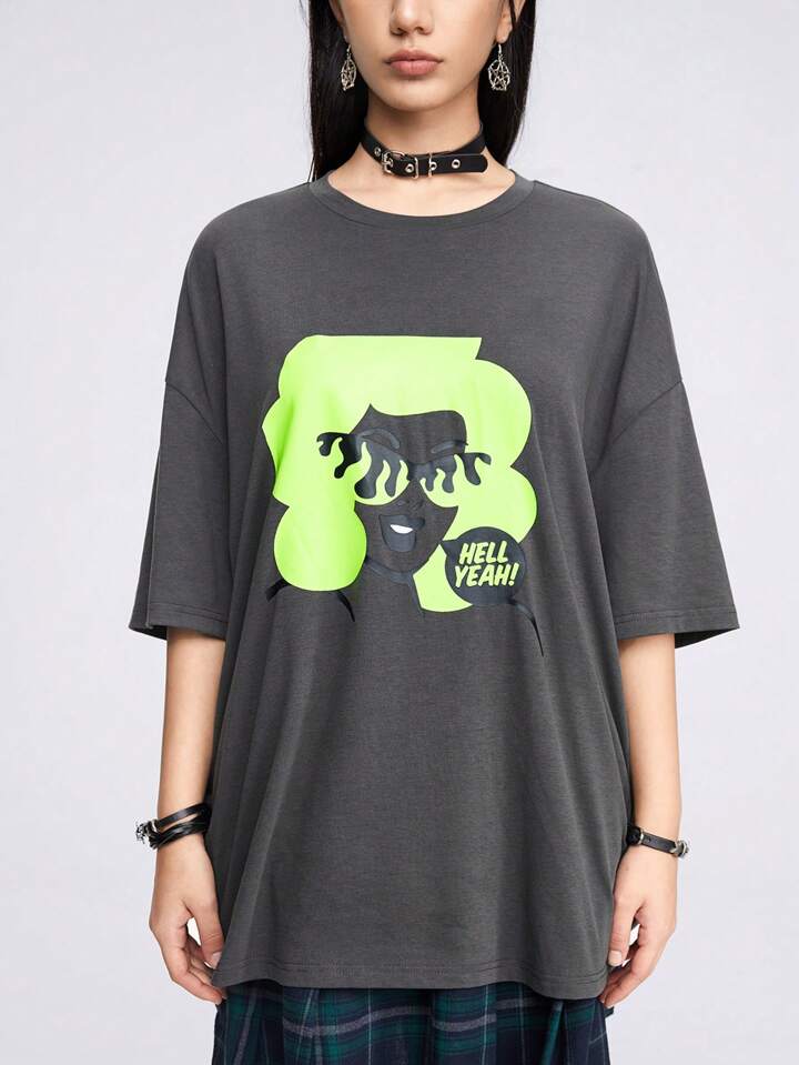 JAVI SNCHZ T-shirt Ample À Manches Courtes Et Col Rond Imprimé Portrait Pour Une Tenue Décontractée D'été