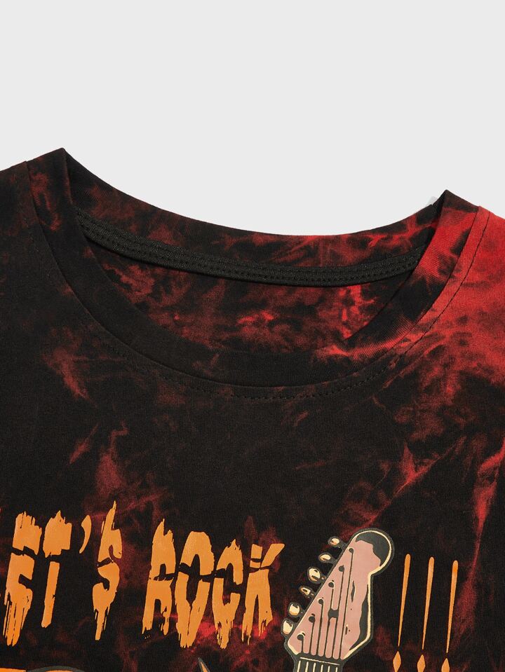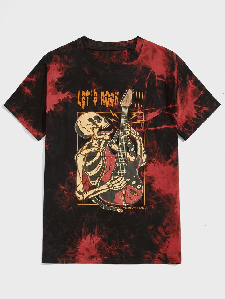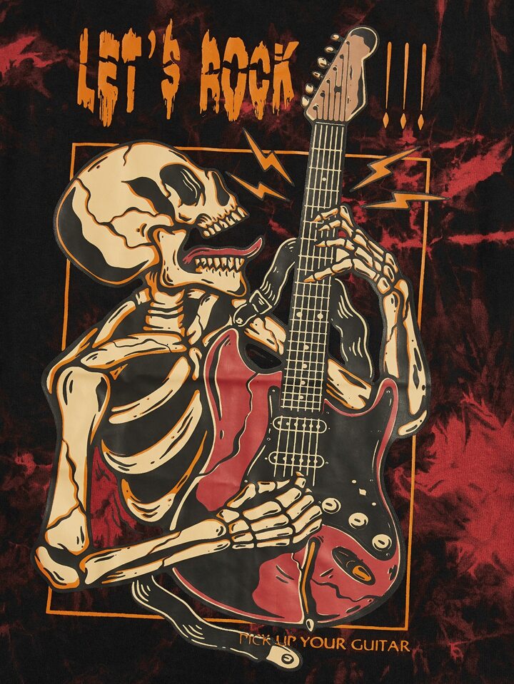 JRart Homme T-shirt slogan tête de mort & guitare graphique tie dye