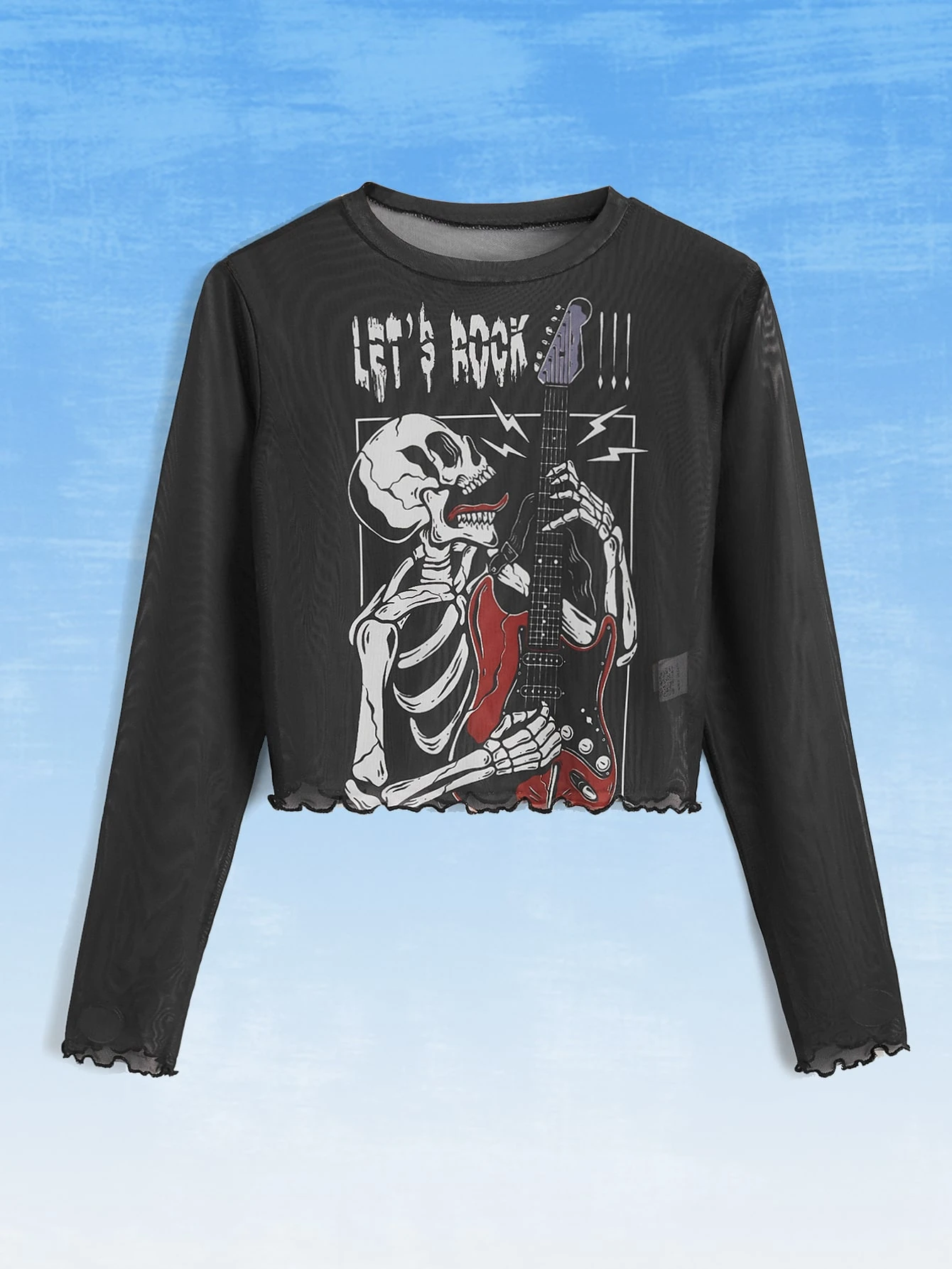 JRart Top squelette à motif slogan à ourlet ondulé en tulle