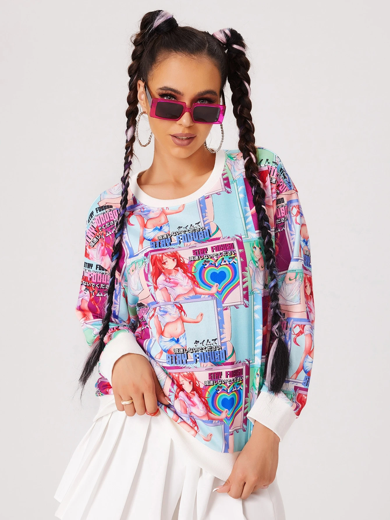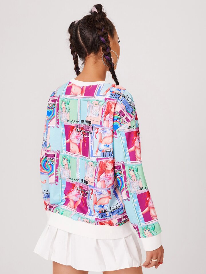 Sweat-shirt avec motif caractère japonais & à imprimé figure