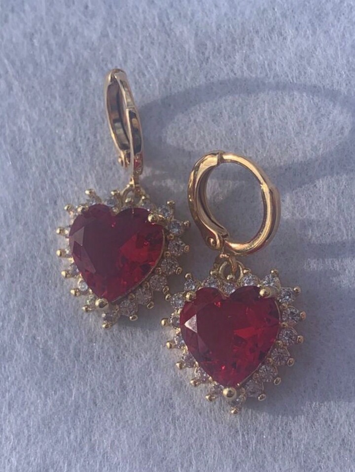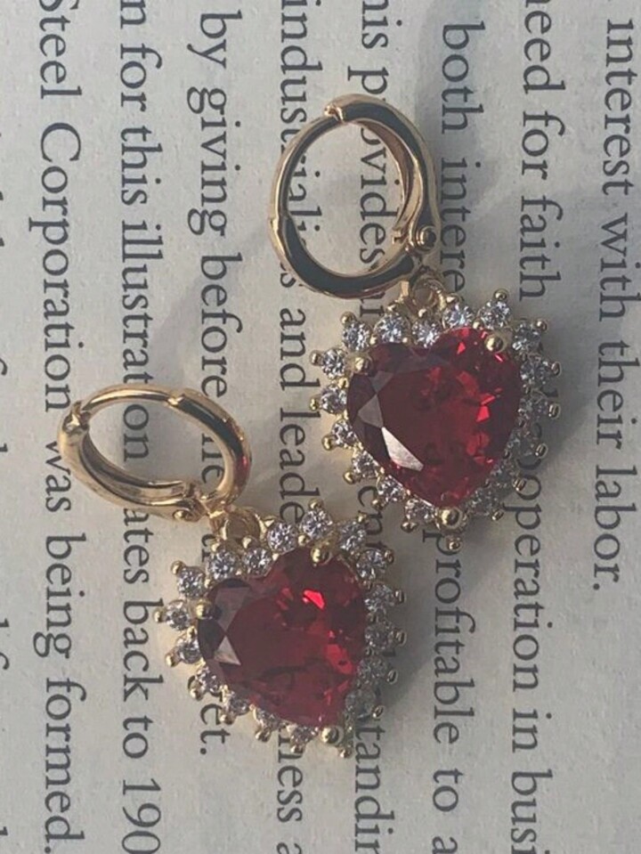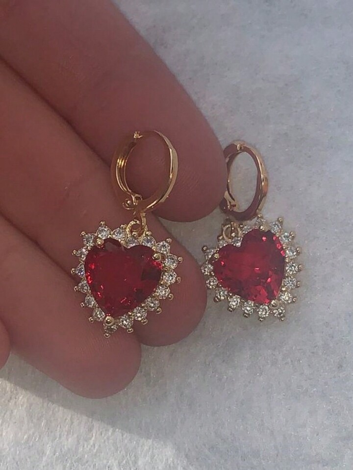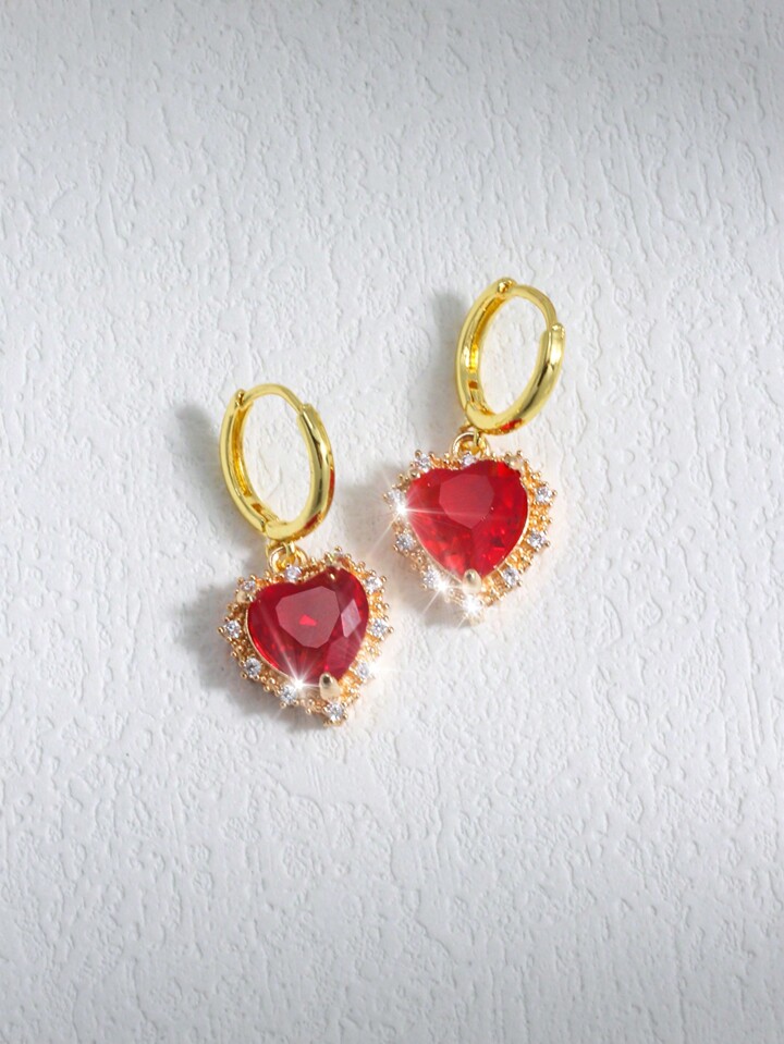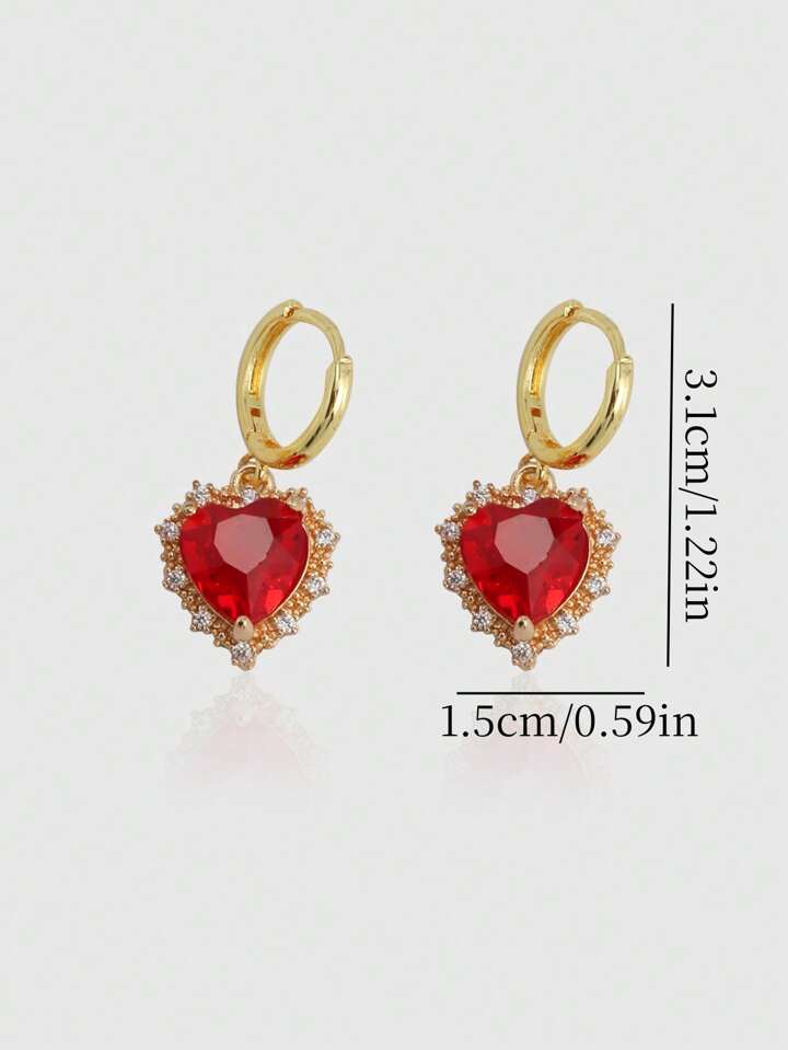 Kawaii 1 paire Boucles d'oreilles pendantes en zircone de forme cœur rouge à la mode, style automne/hiver