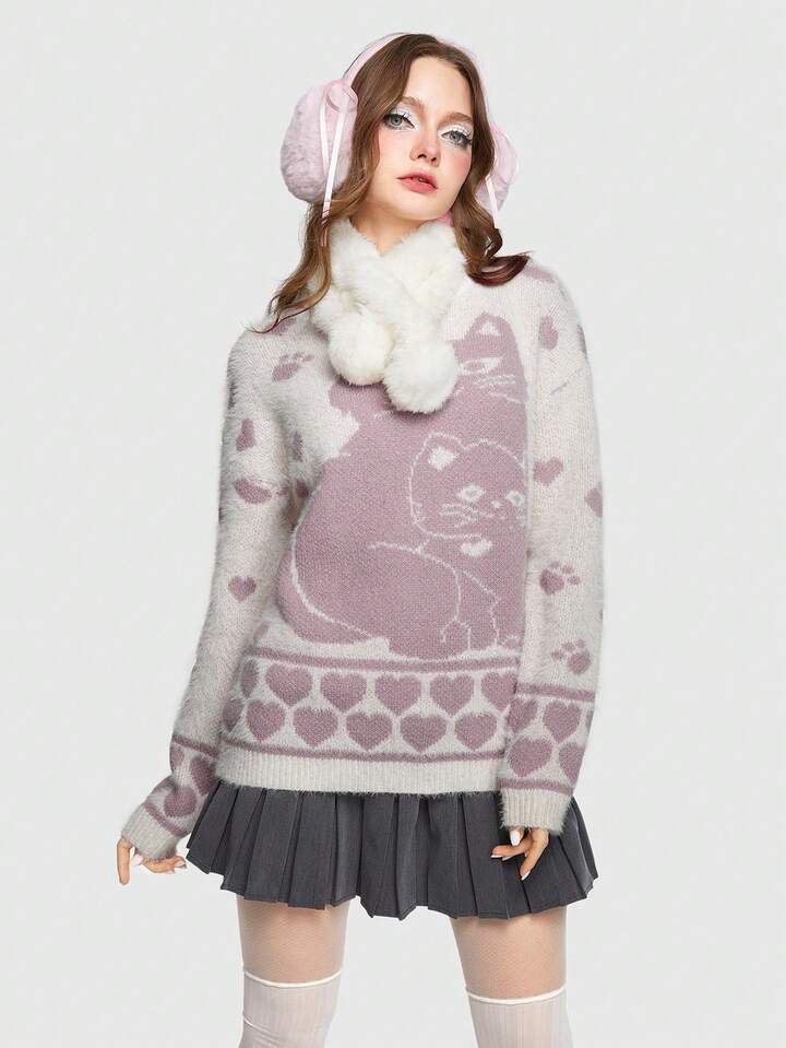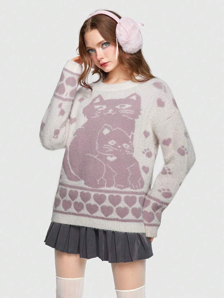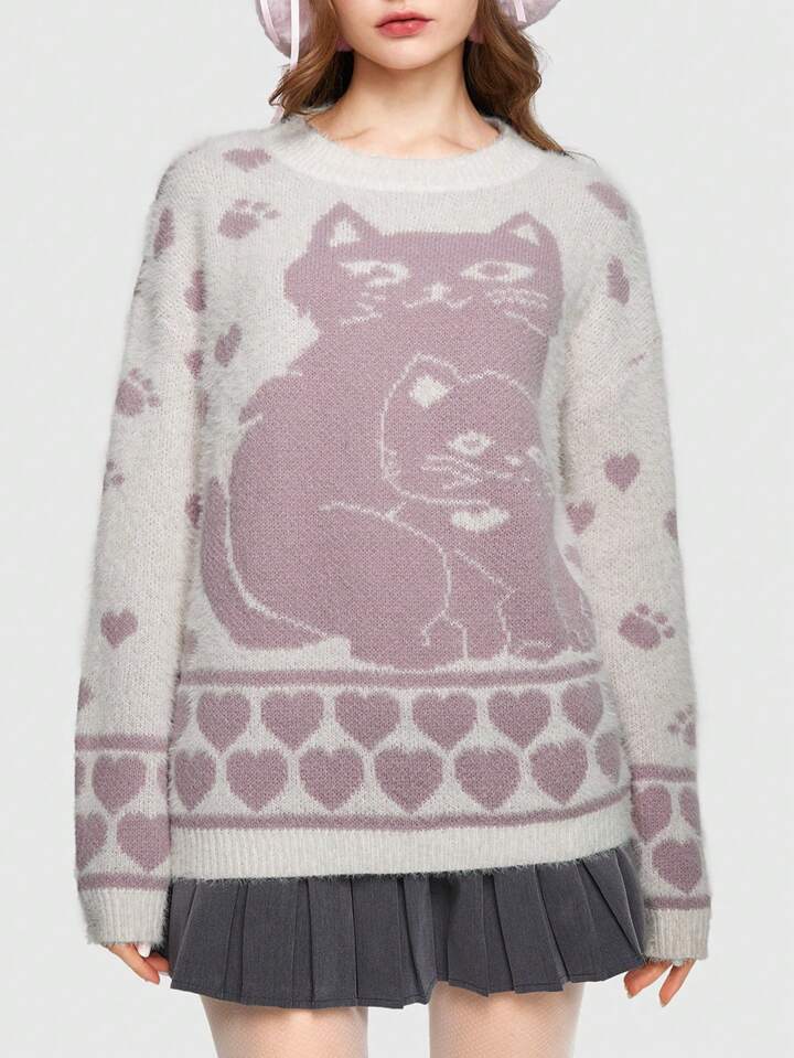 Kawaii 1 pièce Pull Motif Dessin Animé Épaule tombante