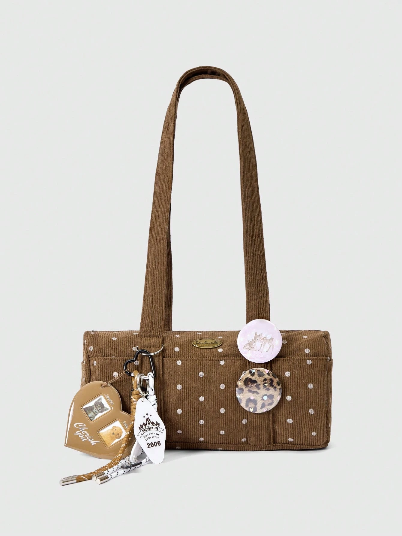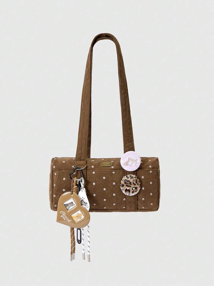 Kawaii 1 pièce Sac fourre-tout à imprimé pois rétro Y2K avec badges et décoration en forme de cœur, sac à une épaule à plusieurs poches, mode et polyvalent pour le quotidien, l'école, les courses, les voyages, les sorties et plus encore