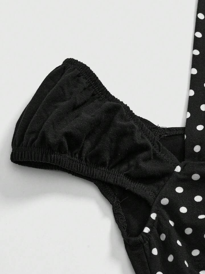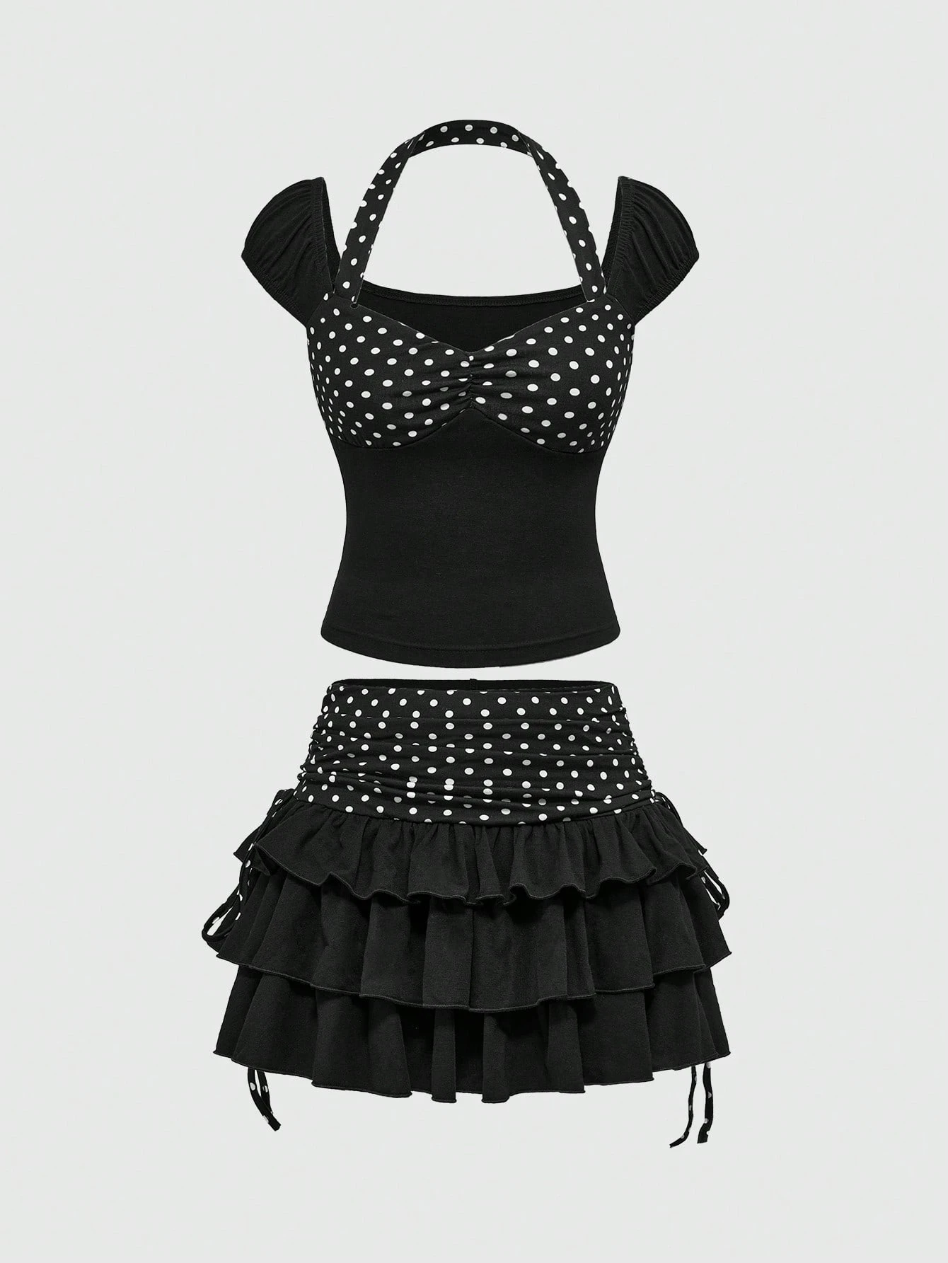 Kawaii 2 pièces Sets Femme d'été - Débardeur Skinny à motif à pois et jupe à ourlet de gâteau