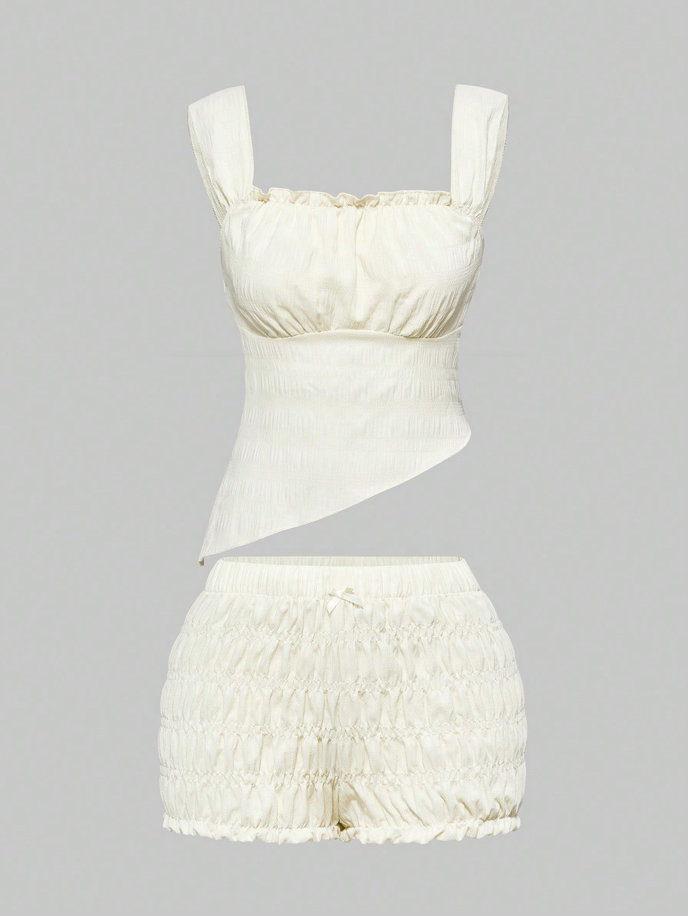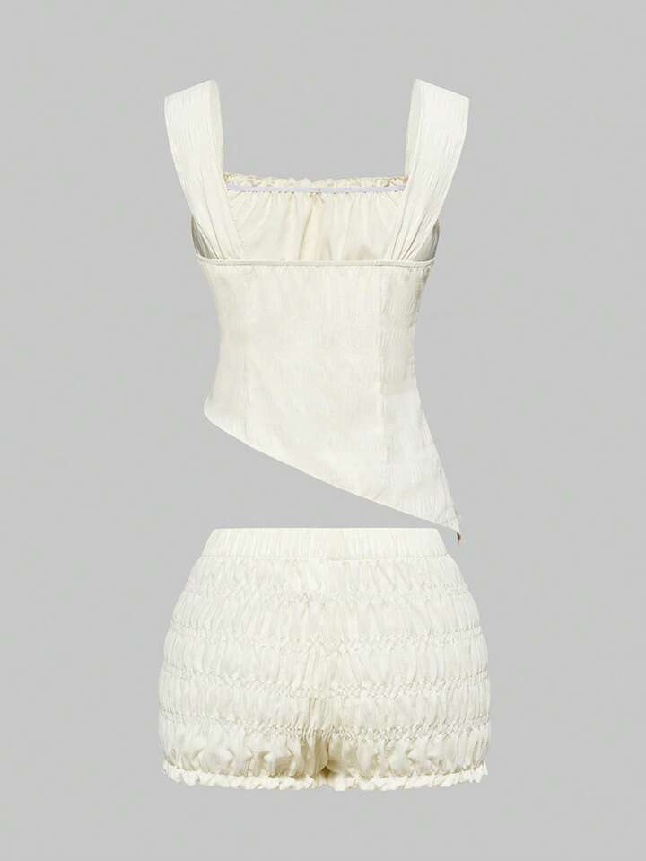 Kawaii 2 pièces/Ensemble femme minimaliste sexy, ensemble débardeur décontracté et short à volants