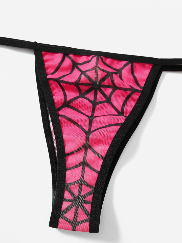 Kawaii 3 pièces Ensemble de tangas dessin animé & toile d'araignée graphique