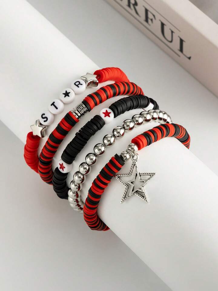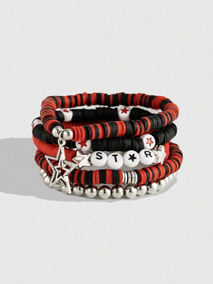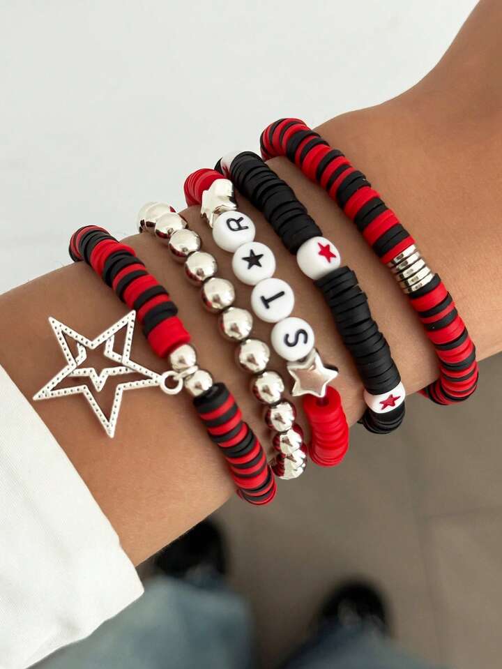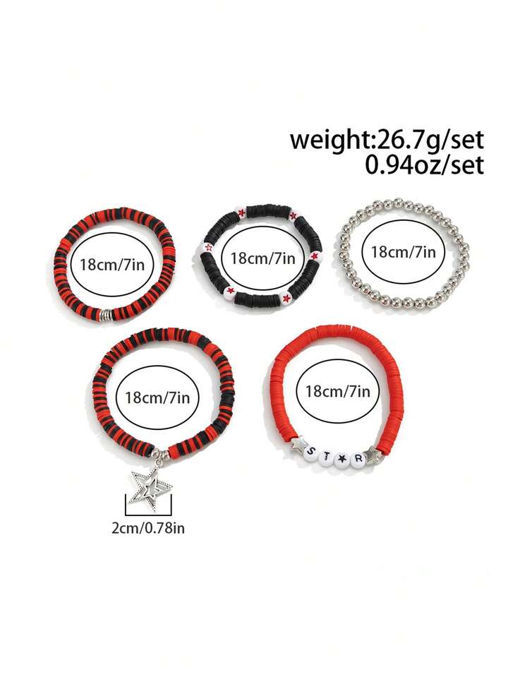 Kawaii 5 pièces Ensemble de bracelets à pendentif de fraise à la mode avec perles de cristal, doux et charmant pour les femmes, idéal pour les amies et les cadeaux de la Saint-Valentin, maman, mère, fête des mères