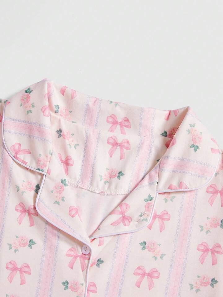 Kawaii Ensemble pyjama avec haut à boutons et pantalon imprimé tout-sur-tout, vêtements d'école, automne hiver