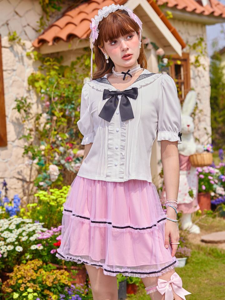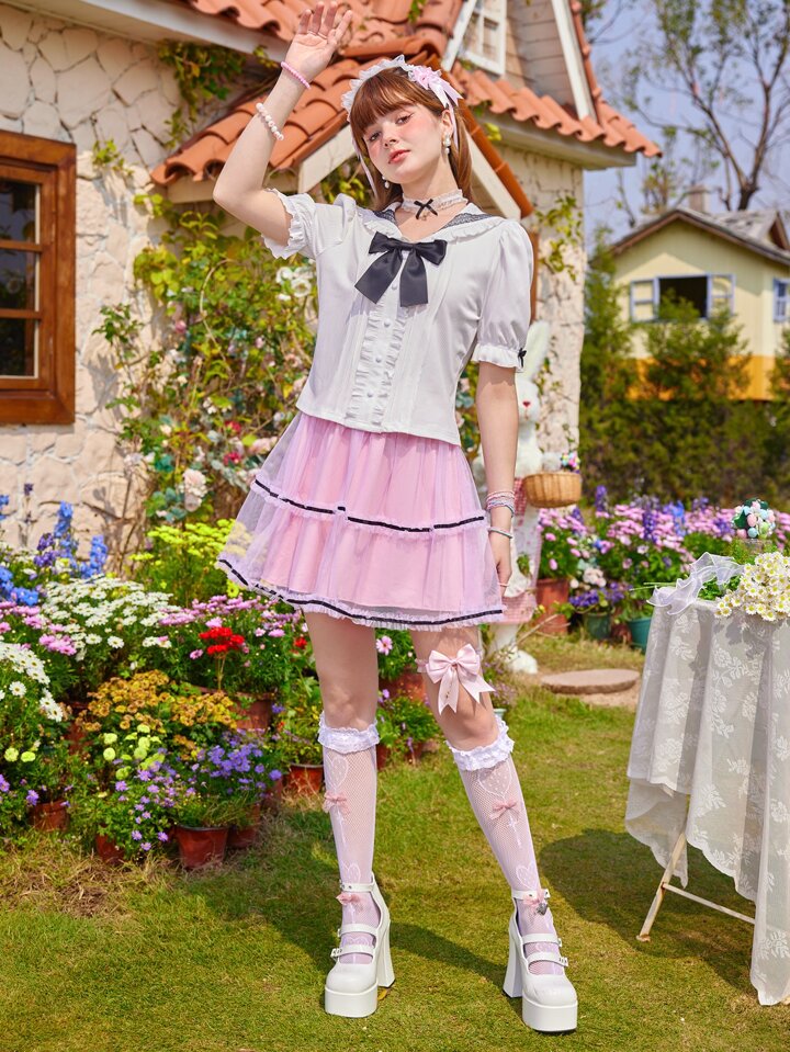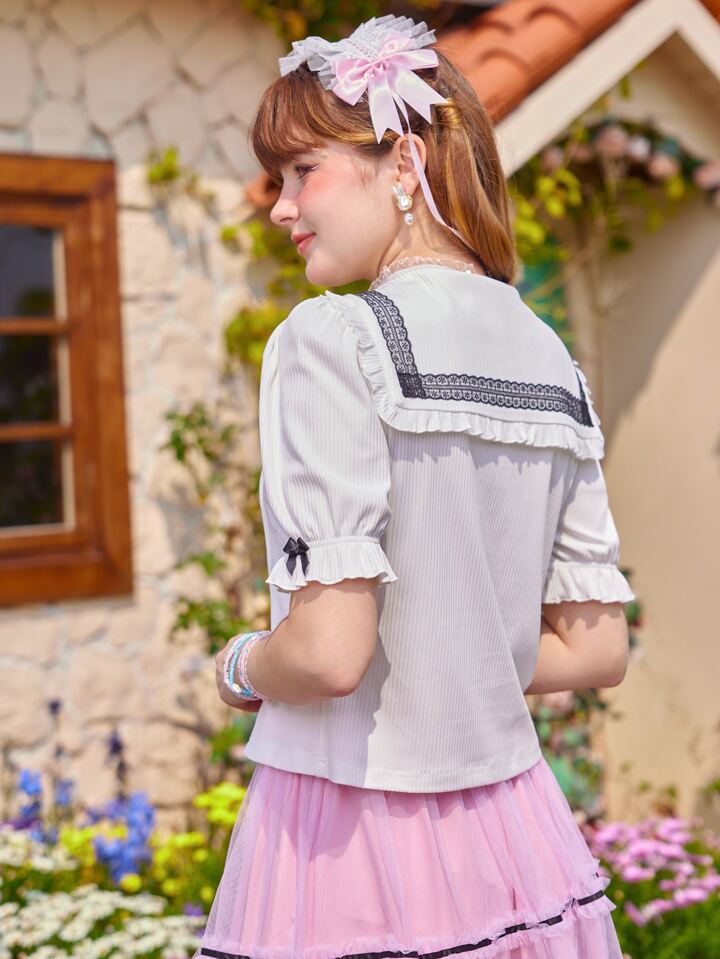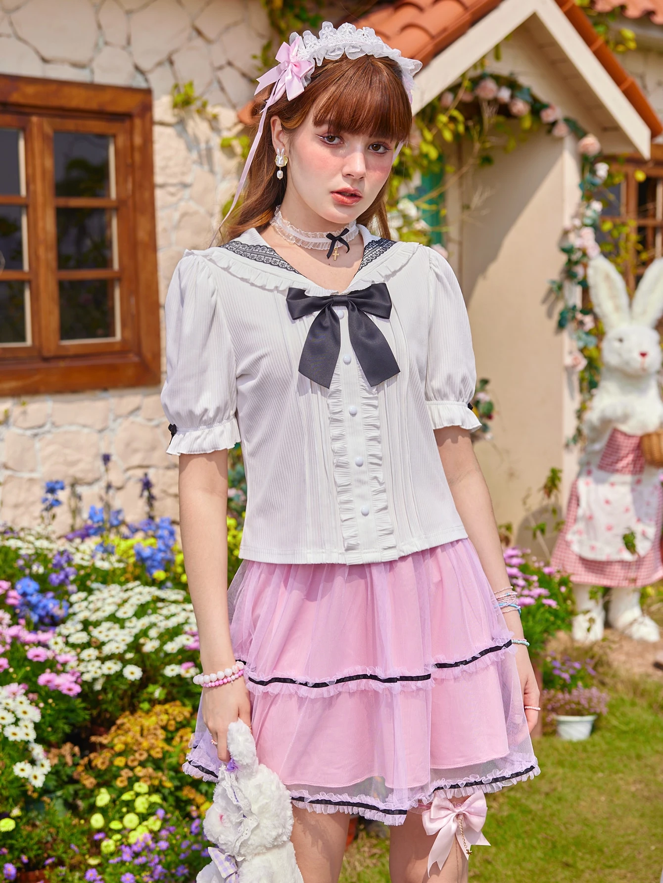 Kawaii T-shirt À Nœud Papillon À Col Marin Manches Bouffantes