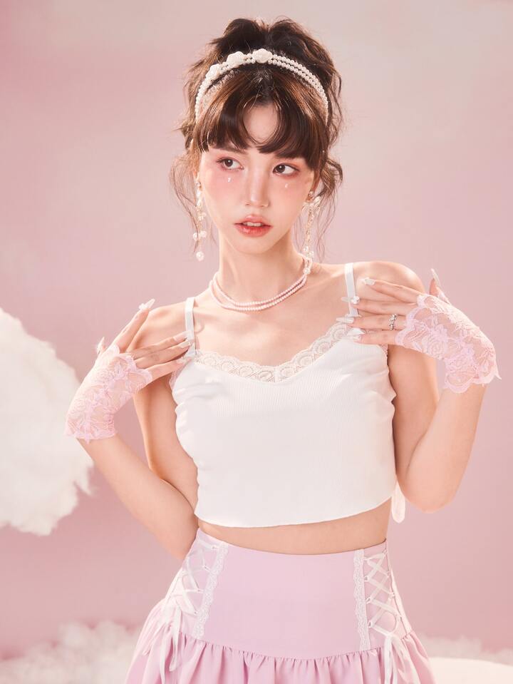 Kawaii Top à fines brides à broderie en dentelle