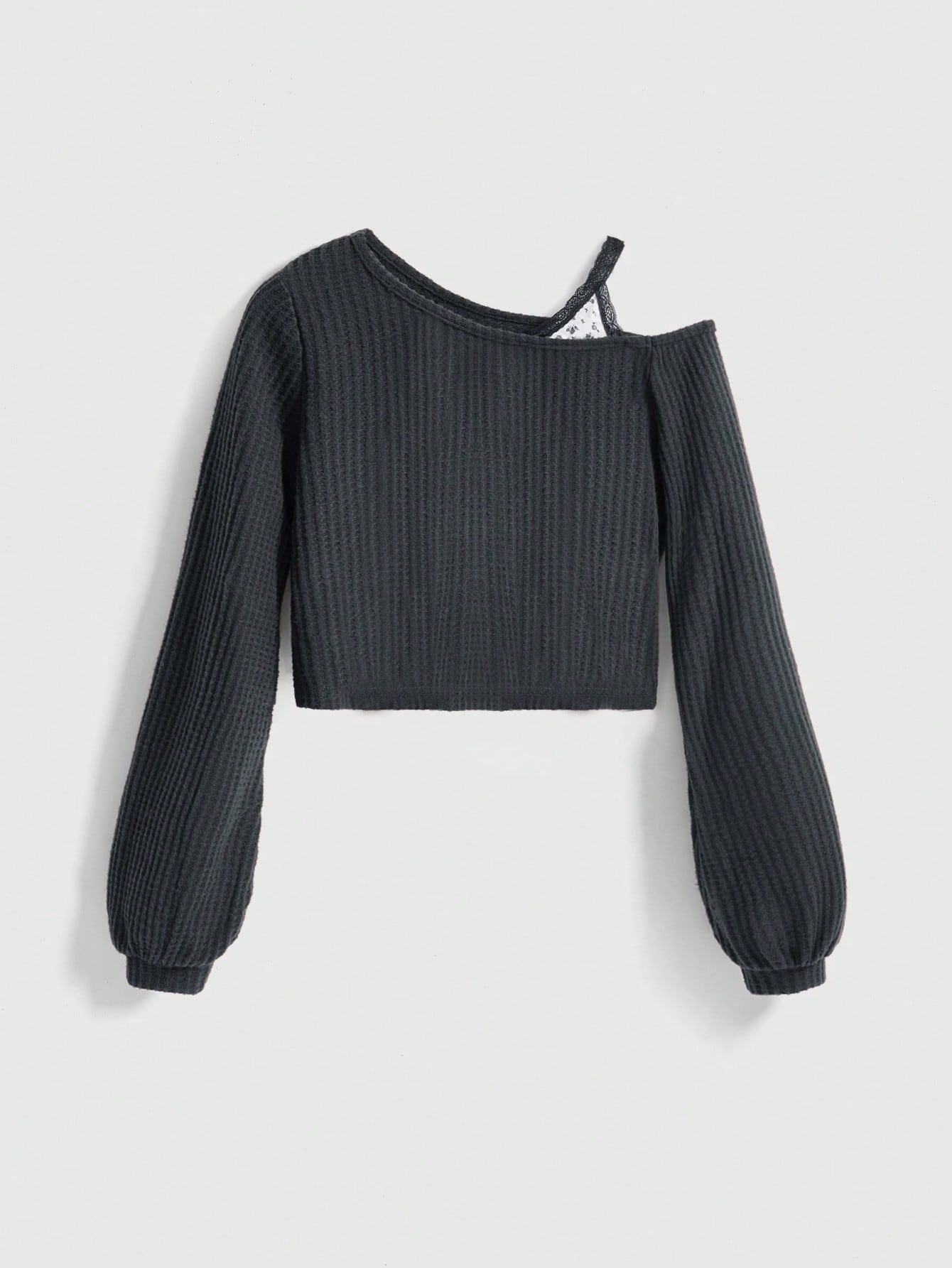 Kawaii T-shirts femme à manches longues, col asymétrique, style décontracté