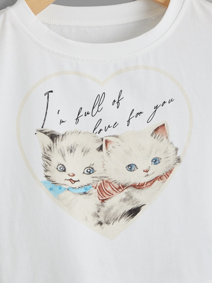 Kawaii T-shirt court à imprimé chat