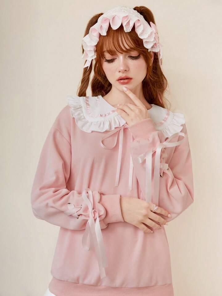 Kawaii Sweat-shirt À Col Contrastant À Nœud