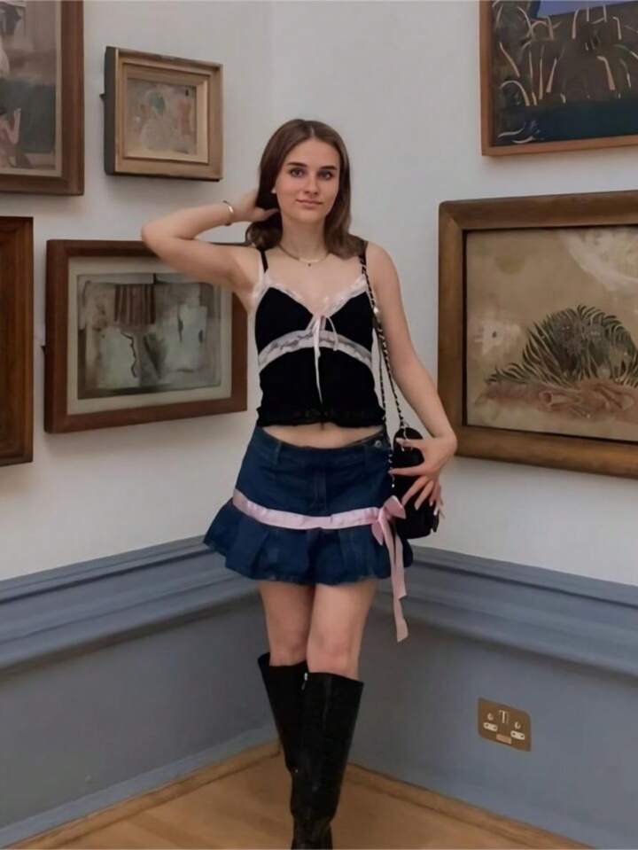 Kawaii Débardeur avec laçage avant à dentelle contrastante, école