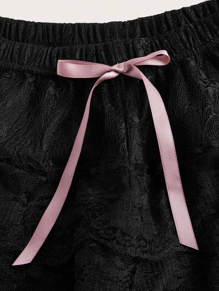 Kawaii Short de sommeil avec nœud frontal en dentelle contrastante, école