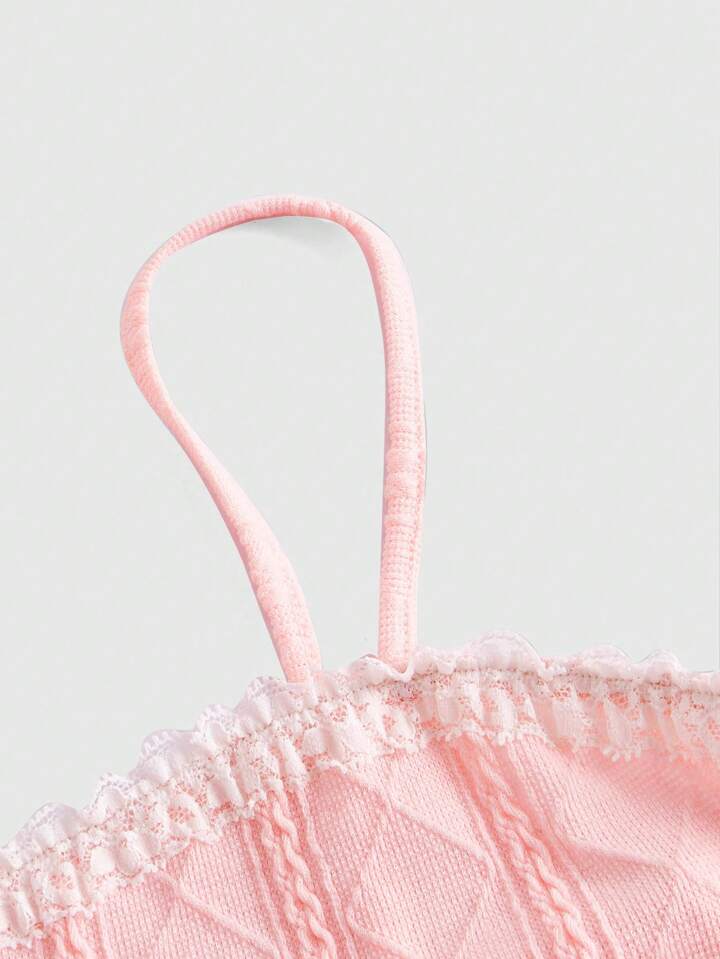 Kawaii Top À Fines Brides À Bordure En Dentelle À Nœud Papillon