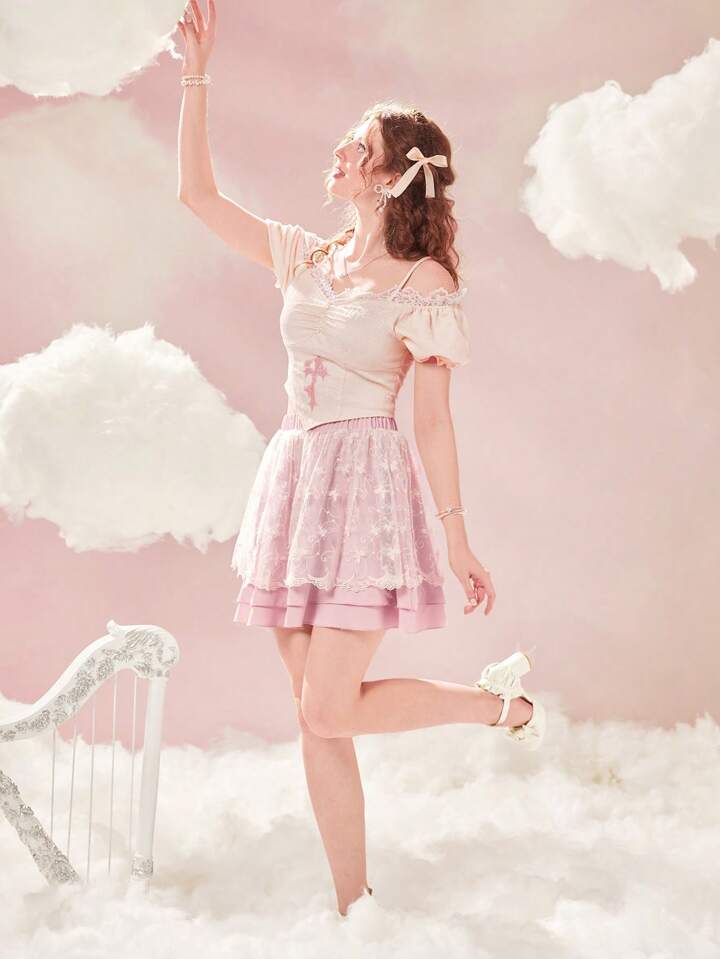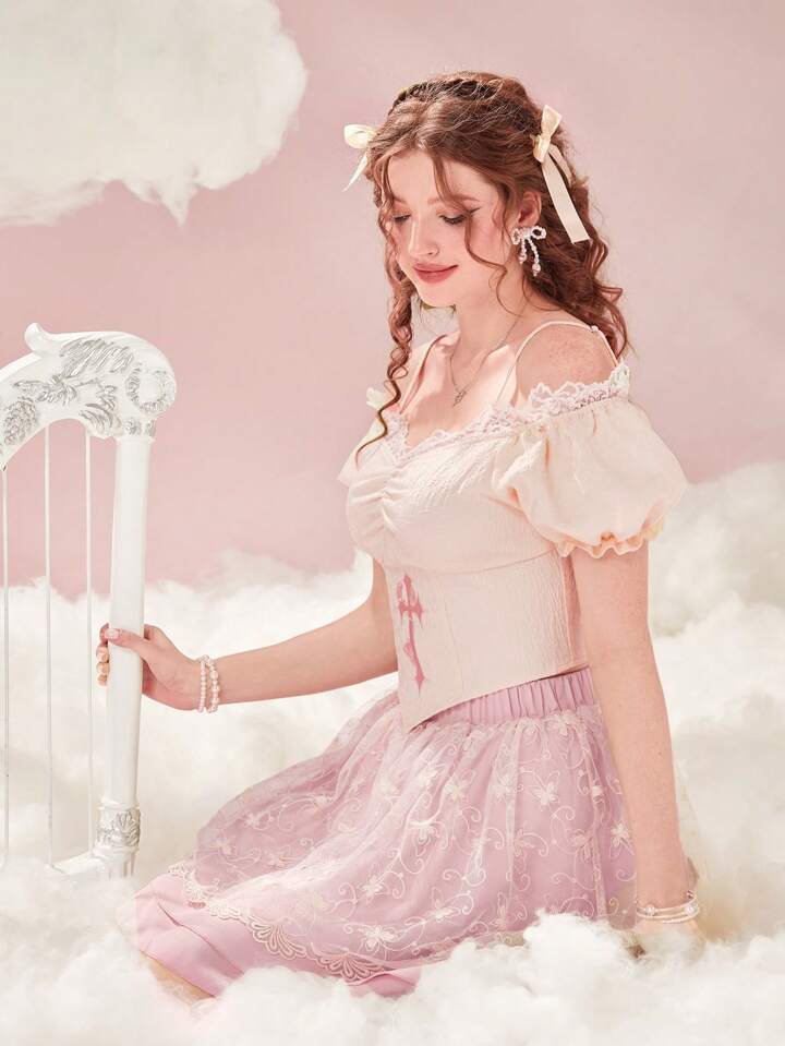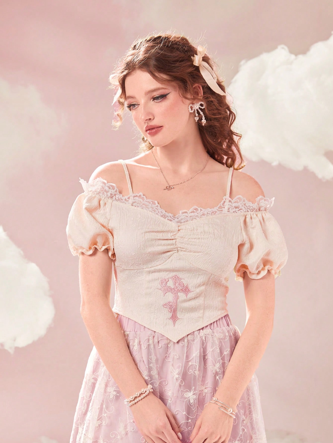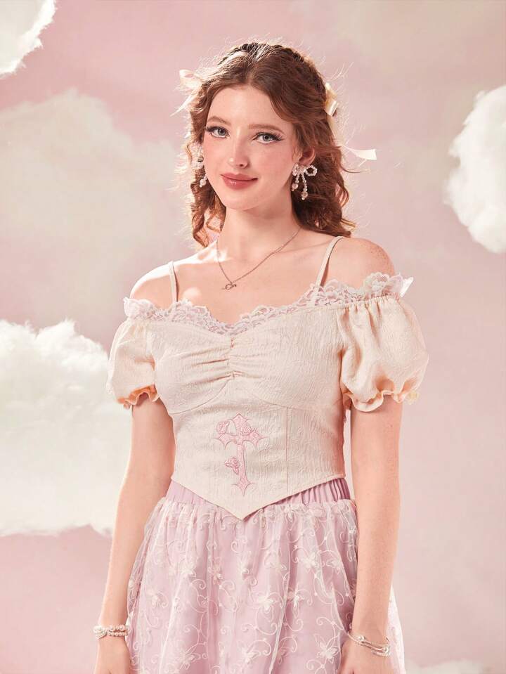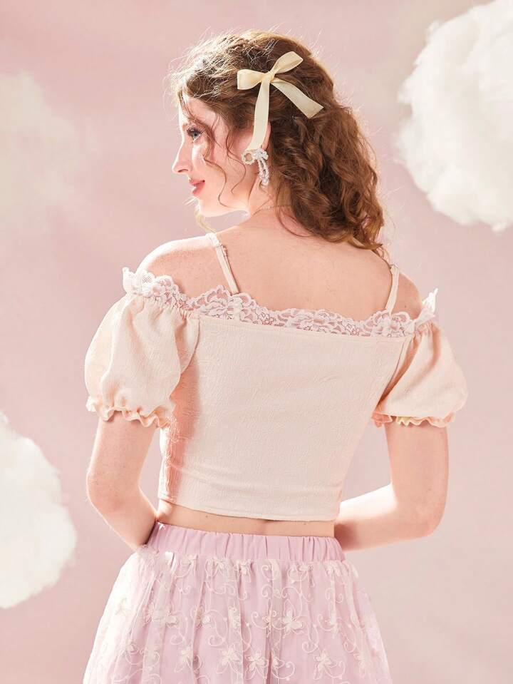 Kawaii Blouse croisé à broderie en dentelle à ruché à plis