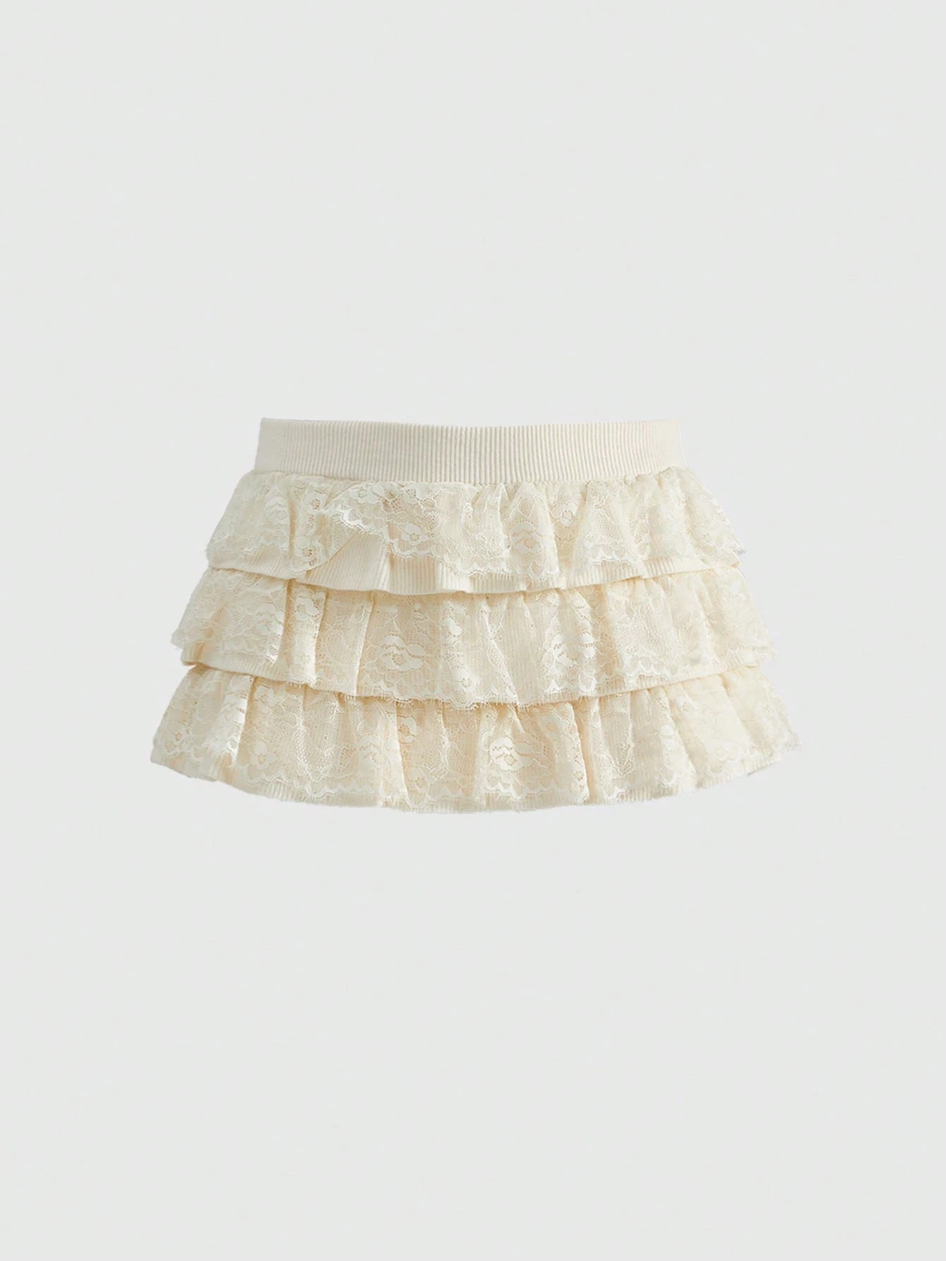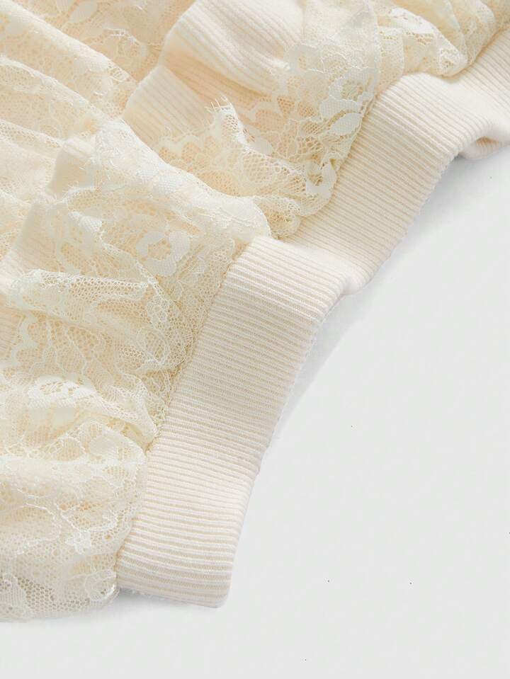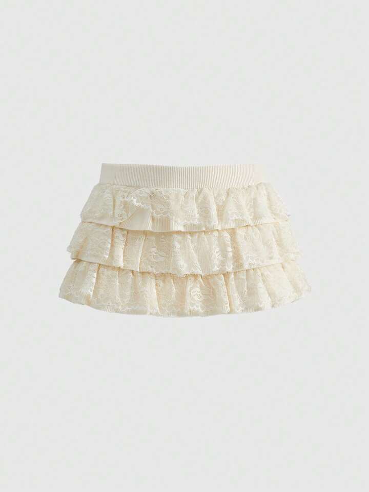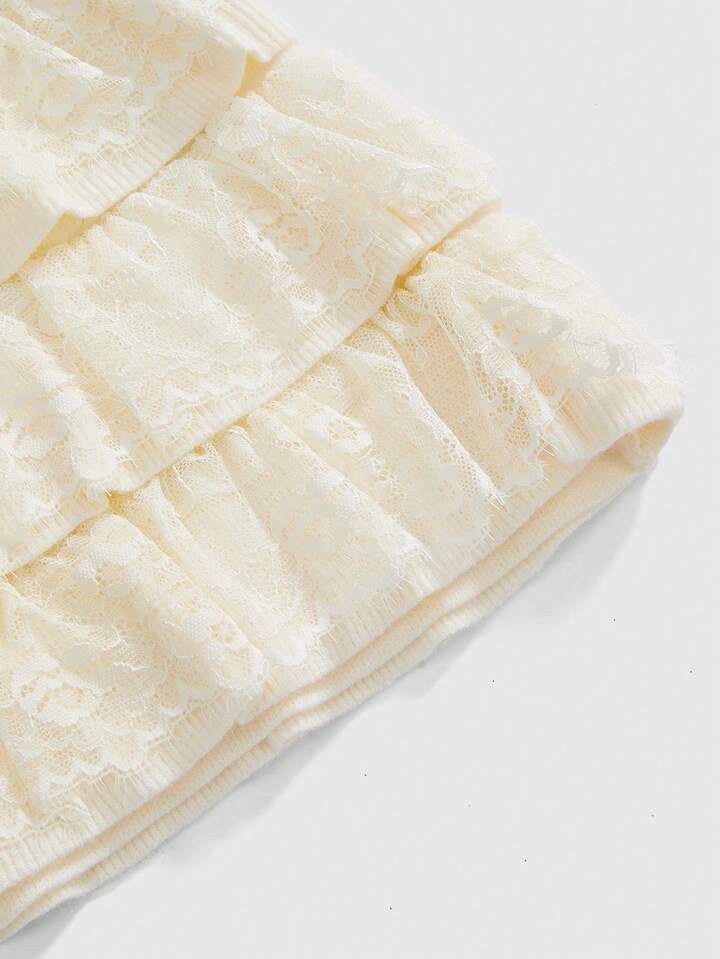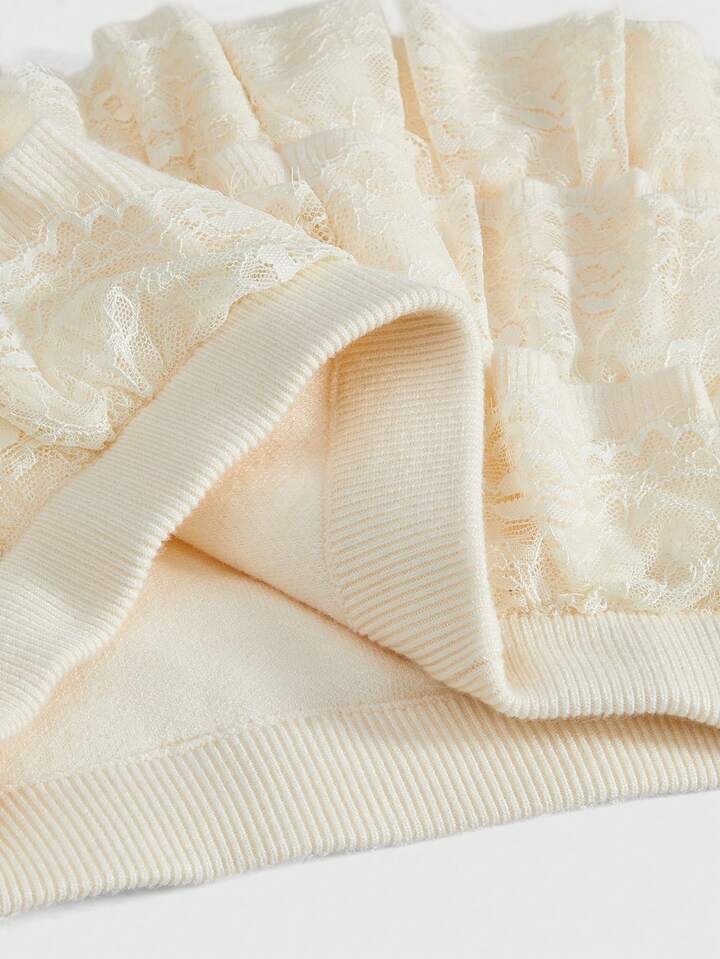 Kawaii Jolie jupe mini en tricot à taille basse avec patchwork de dentelle et nœud