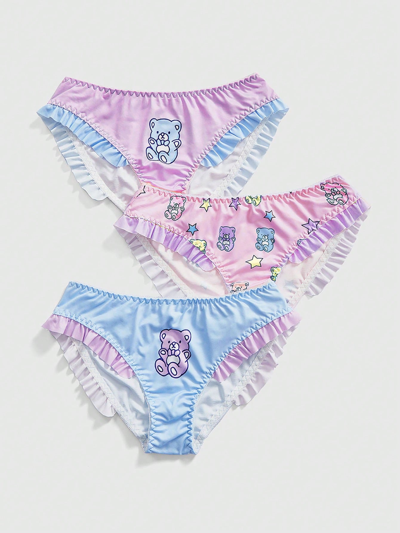 Kawaii Ensemble de bikini culotte à volants avec imprimé ours coloré