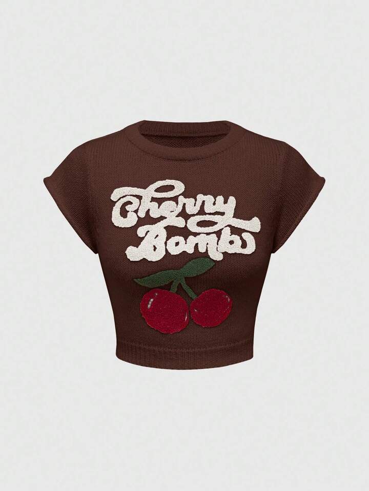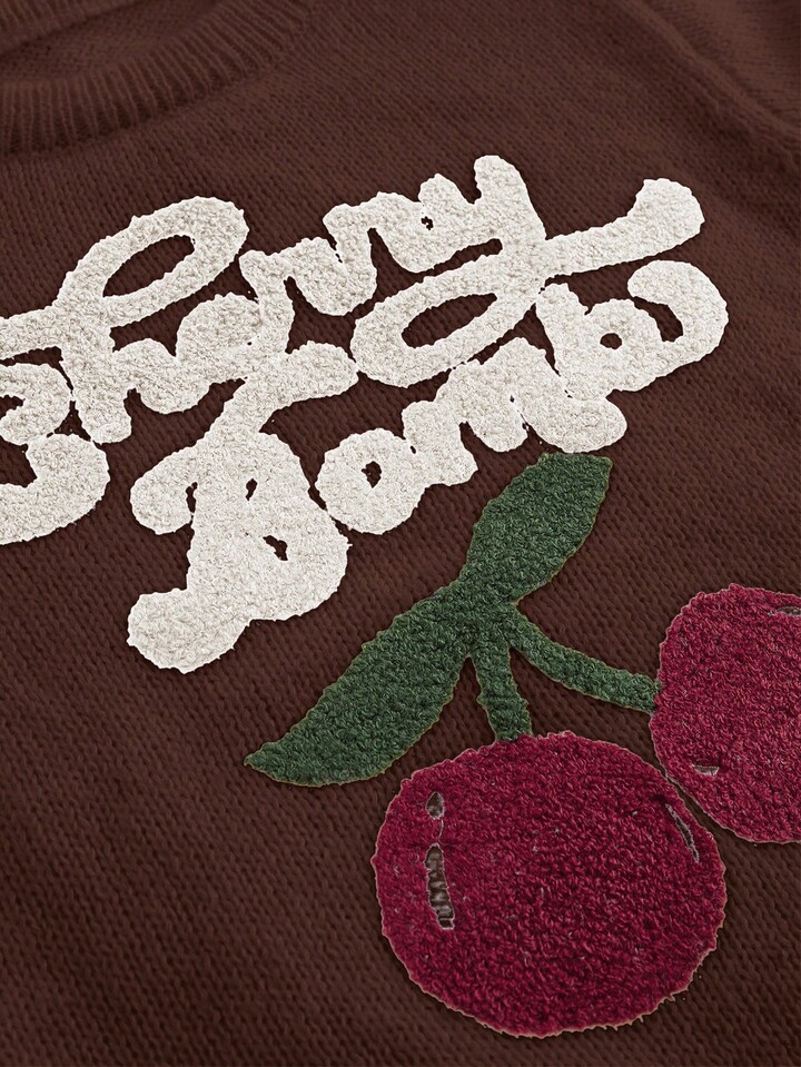 Kawaii Pull femme style universitaire mignon et innocent, col montant, manches bouffantes, avec broderie de cerises