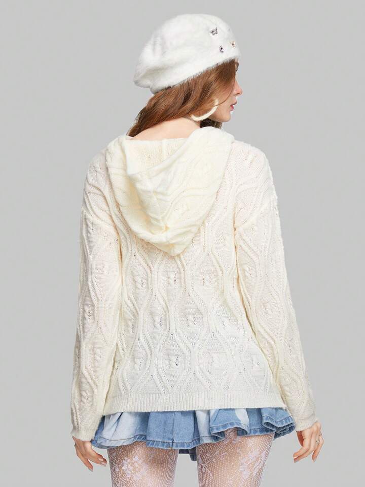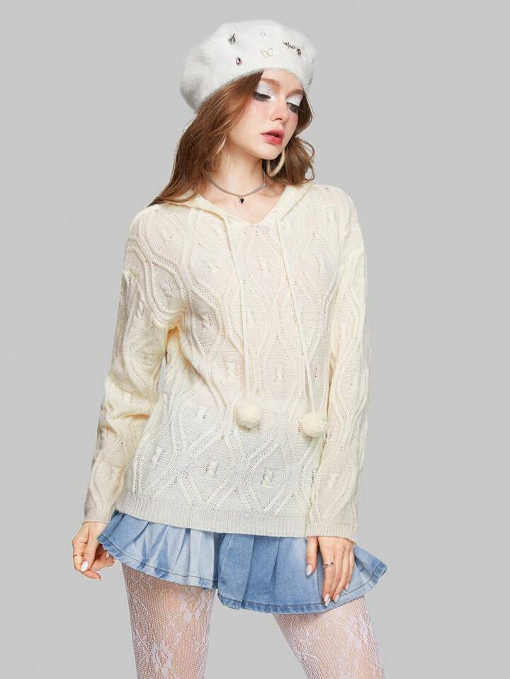 Kawaii Pull Épaule Tombante Pompon À Cordon À Capuche