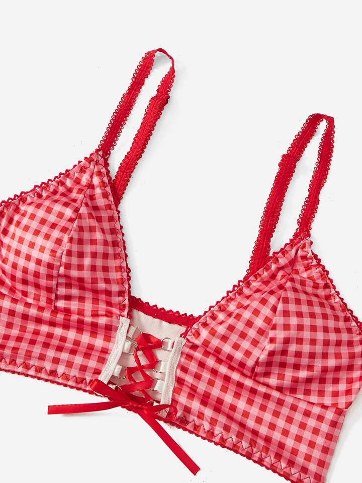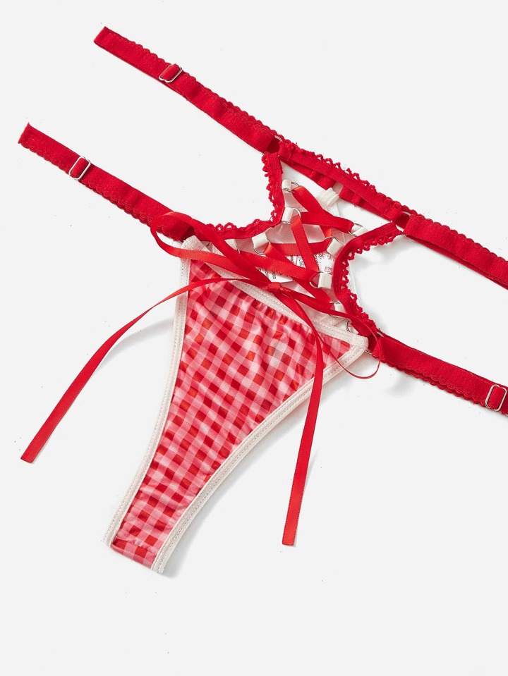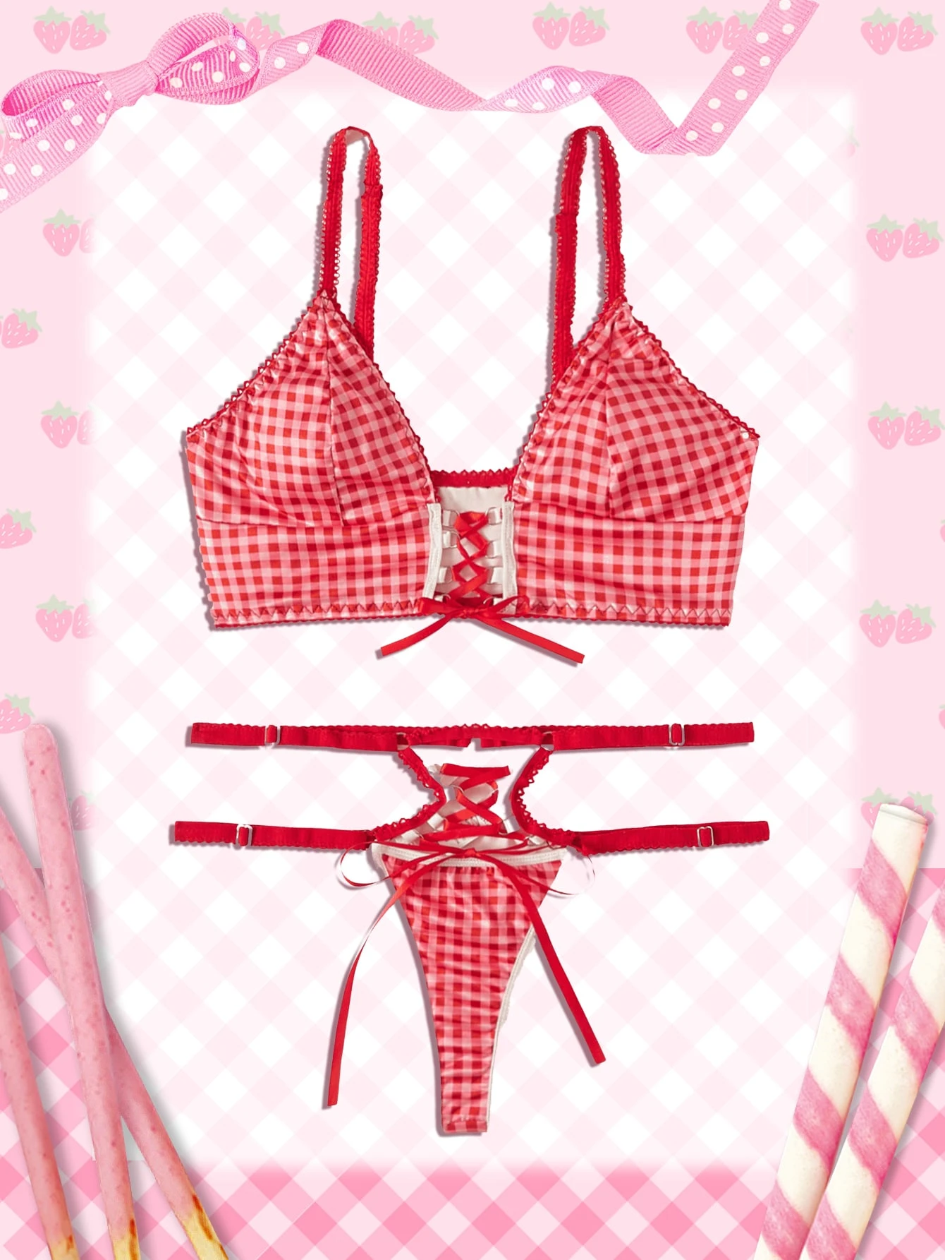 Kawaii Ensemble de lingerie en vichy à lacets à lien anneau