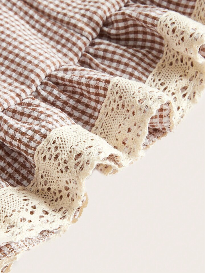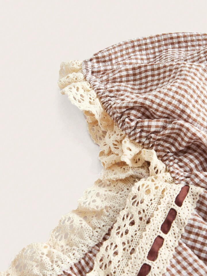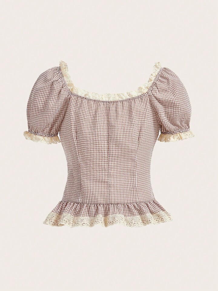 Kawaii Blouse À Carreaux En Dentelle À Volants
