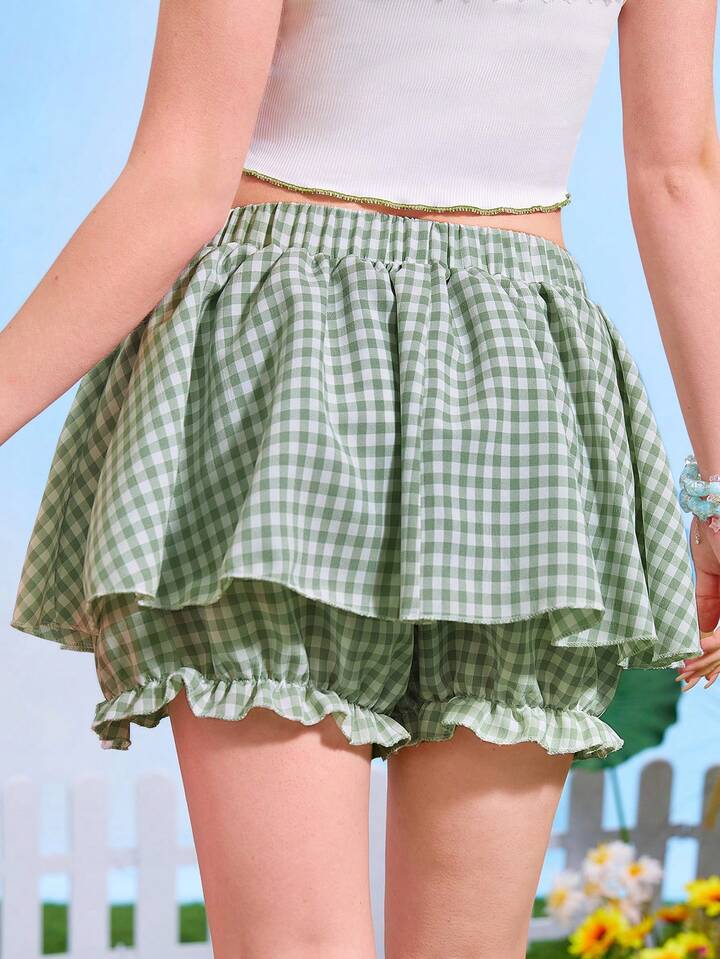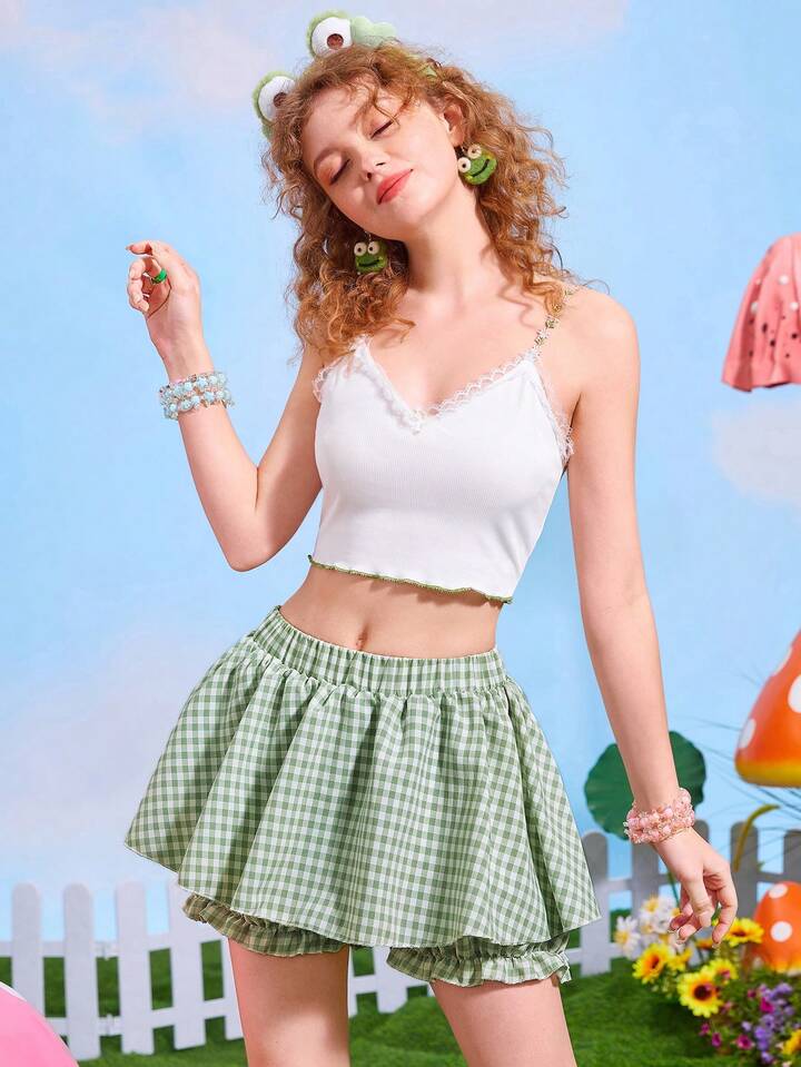 Kawaii Jupe-short à carreaux à volants