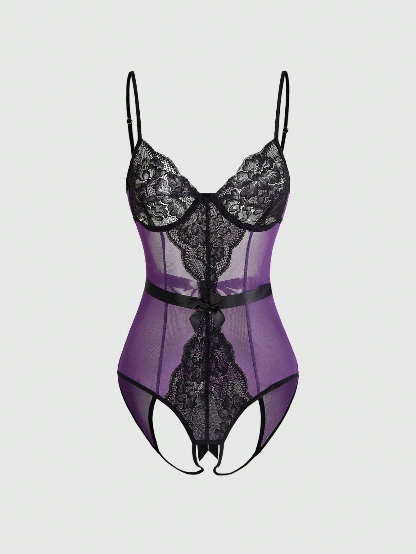 Kawaii Combinaisons sexy à découpe ouverte avec bordure contrastée de style gothique