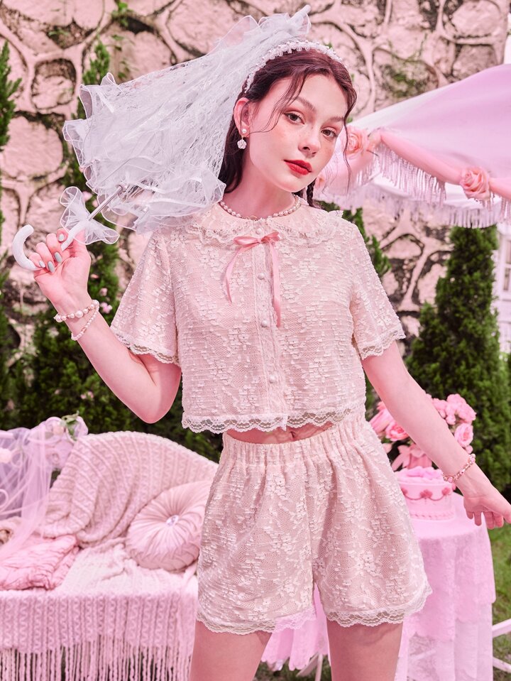 Kawaii Ensemble de pyjama en dentelle à col statement