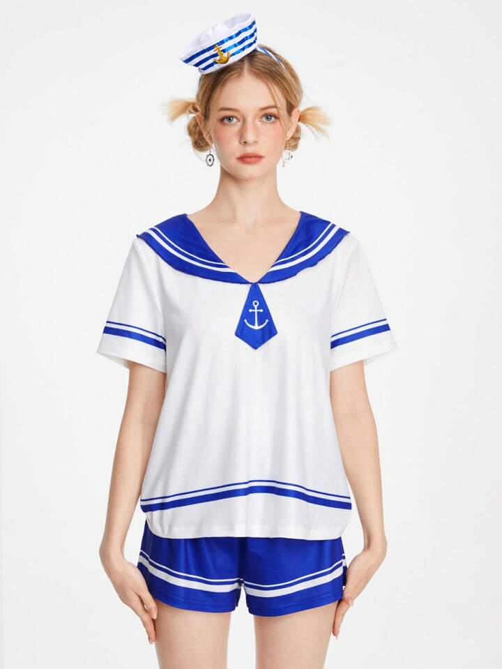 Kawaii Ensemble de pyjama mignon pour femmes de style marine