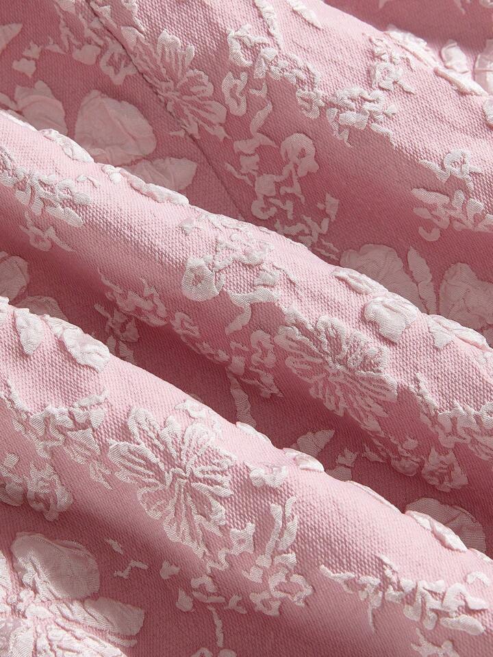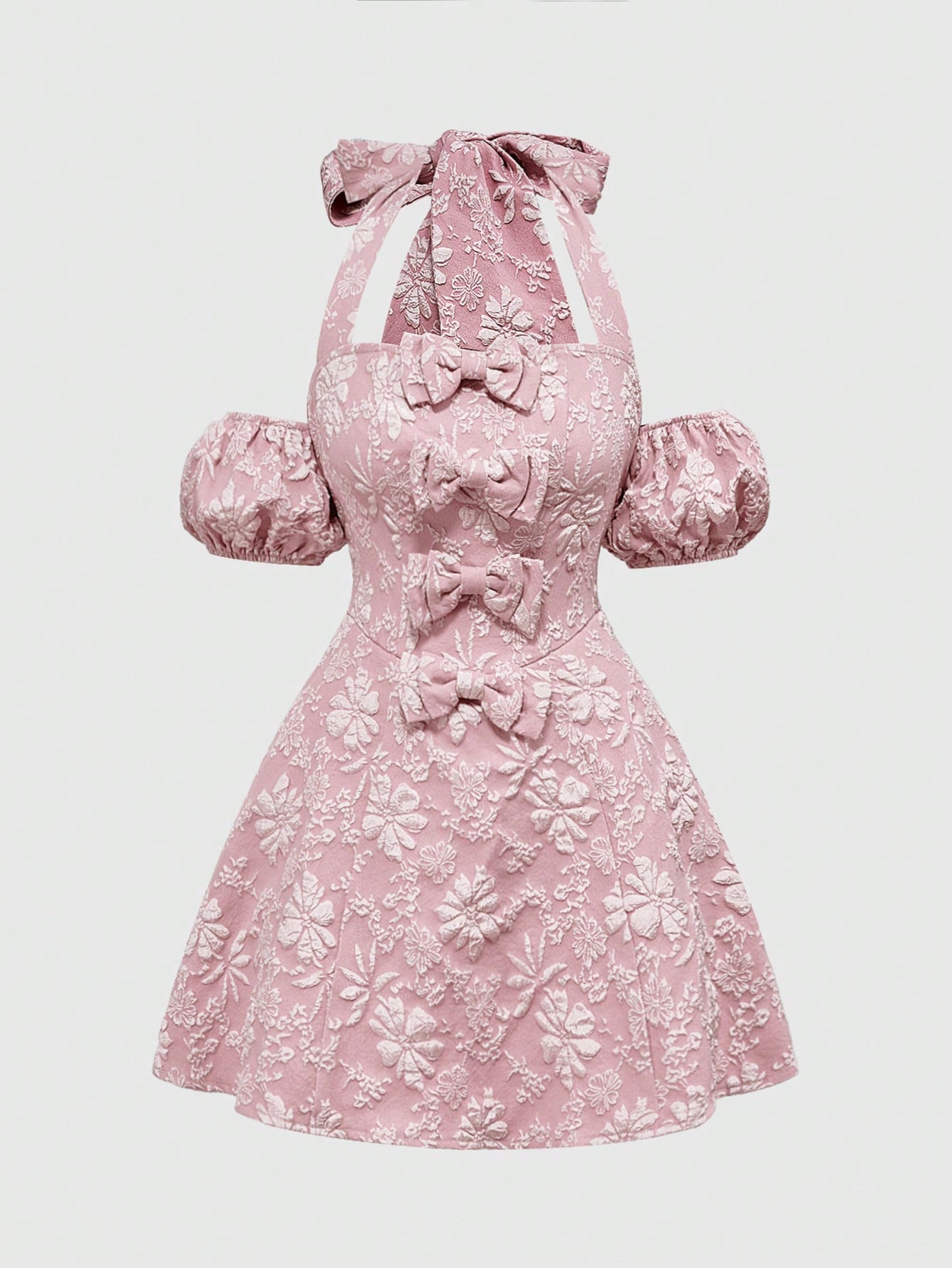 Kawaii Robe rose à manches bouffantes et nœud style palais, inspirante, à fleurs, pour la Saint-Valentin
