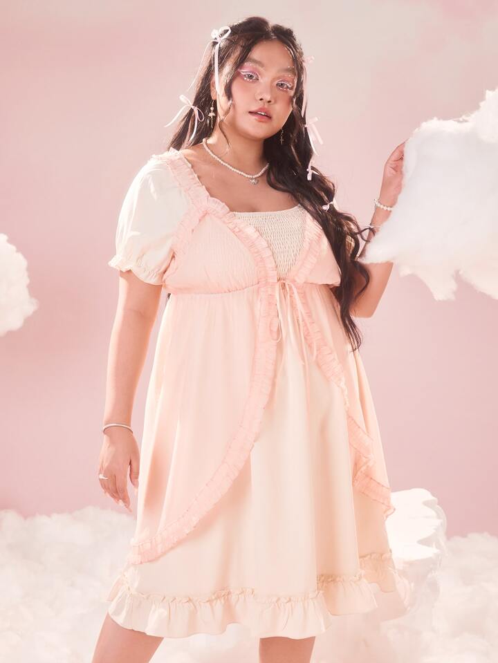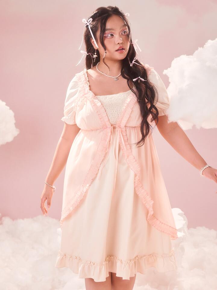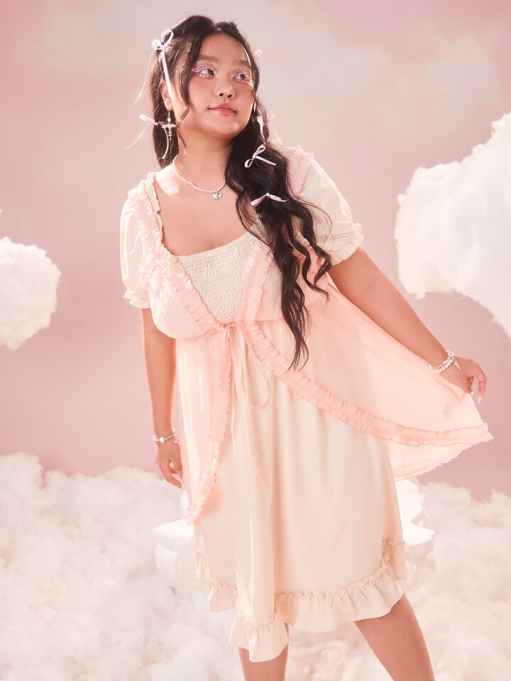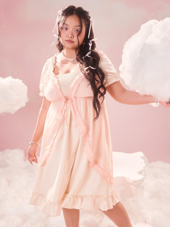 Kawaii 1 pièce Robe à fines brides à nœud à volants en tulle