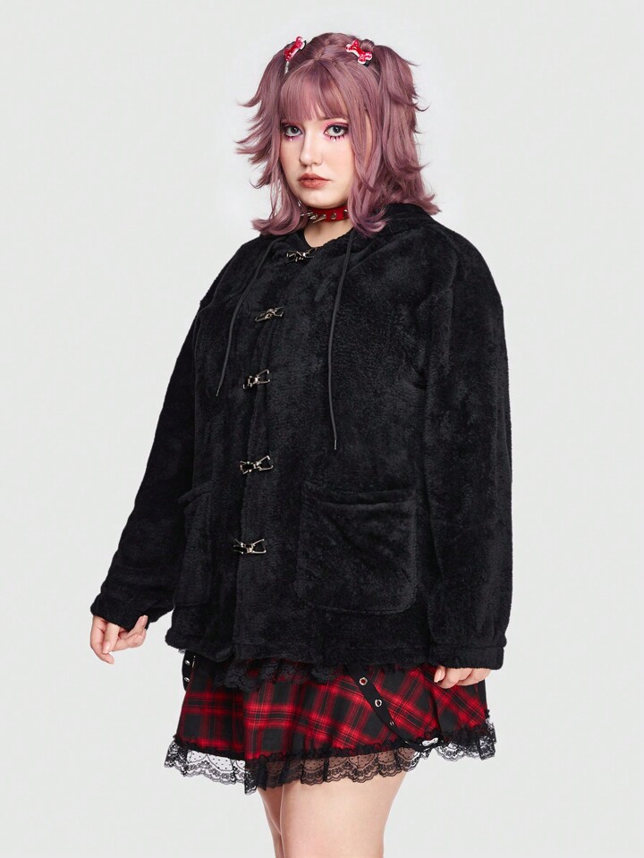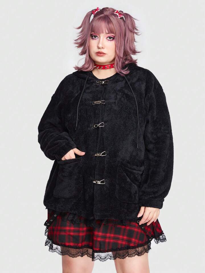 Kawaii Plus Manteau Boucle Devant À Cordon À Capuche Duveteux